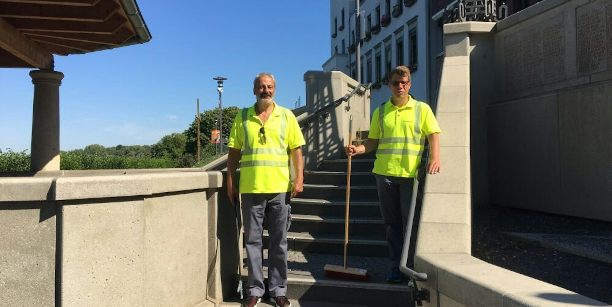 Als an der Grundschule in Urbach der Hausmeister krank war, dringende Arbeiten aber getan werden mussten, sprangen sie ein und brachten Schulhof und Klassenräume in Schuss. Der stellvertretende Bezirksamtsleiter Erik Stäuder lobt die neuen Kollegen: „Als das Bezirksamt für die Schulen Gesichtsschilder zur Verteilung vor Ferienende geschickt bekam, sortierten die beiden die Lieferung zur Abholung für die einzelnen Schulen. Wir hätten sonst kaum gewusst, wie wir das organisieren können“,sagt Stäuder.