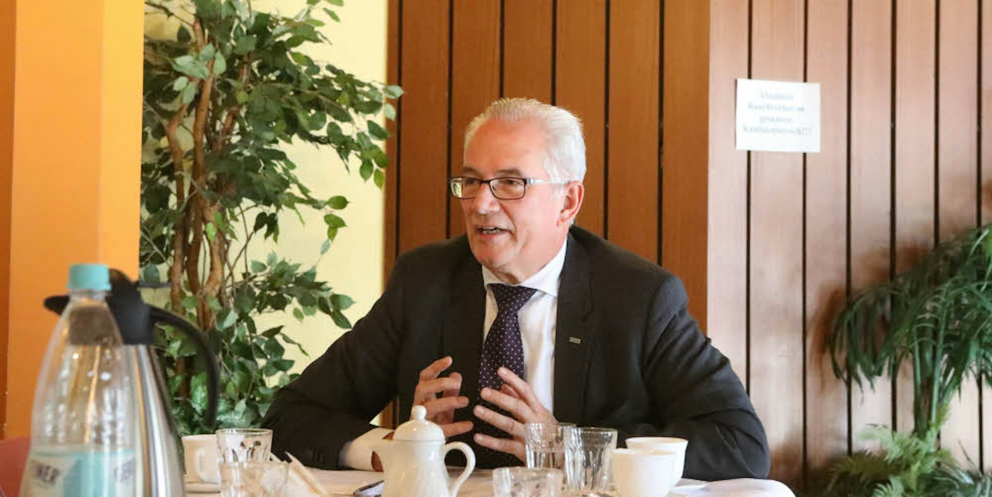 Porz – Plastikblumen, Holzvertäfelung, gelber Anstrich – die Kantine für die Mitarbeiter des Bürgeramtes Porz hat schon bessere Tage gesehen. Dennoch hat sie der neue Leiter des Bürgeramtes Porz, Karl-Heinz Merfeld, als Ort für seine erste Pressekonferenz in neuer Funktion ausgesucht. Und das gleich aus zwei Gründen: Zum einen, weil die Maler im Haus sind und unter anderem Merfelds Büro neu streichen. Zum anderen aber, weil sich gerade in Sachen Kantine etwas ändern soll.
