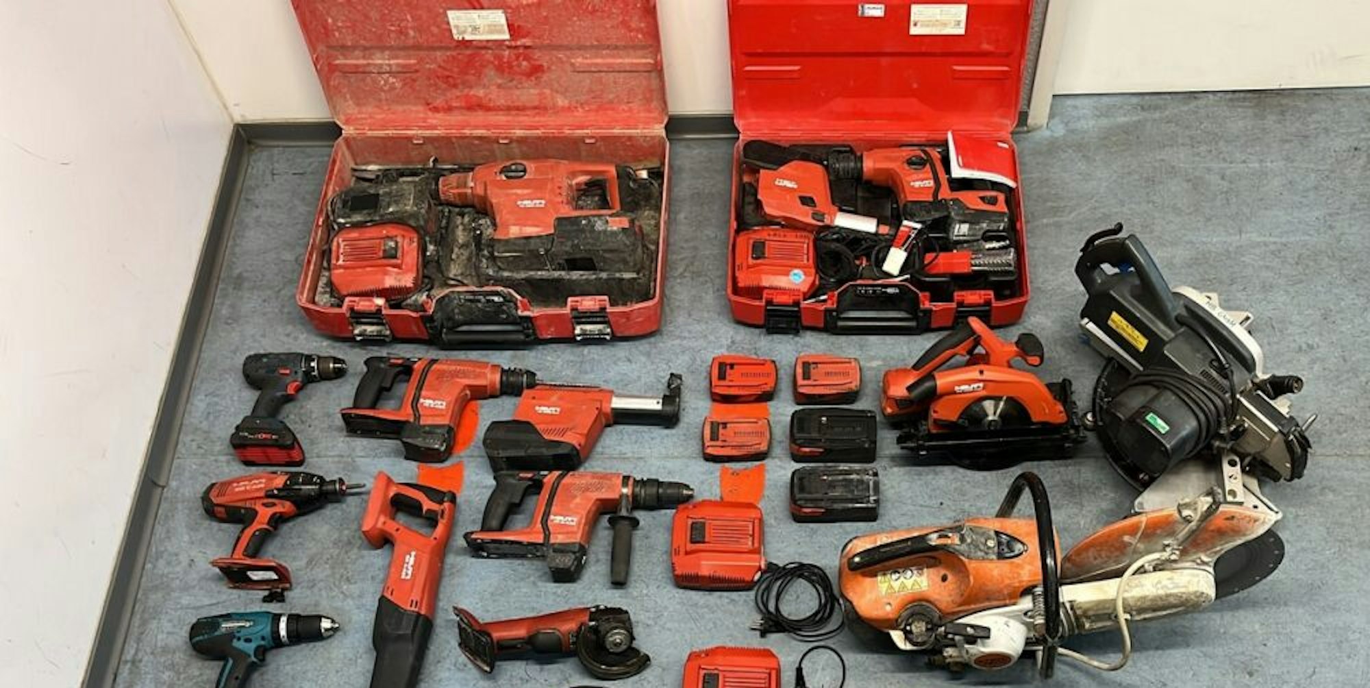 Die Kontrolle des Wagens durch eine hinzugerufene Streife bestätigte den ersten Verdacht. Polizisten stellten Handstichsägen, Akkuschrauber, Multicutter, Winkelschleifer, Schlagschrauber sowie Werkzeugtaschen und Akku-Ladegeräte für weitere Ermittlungen sicher.