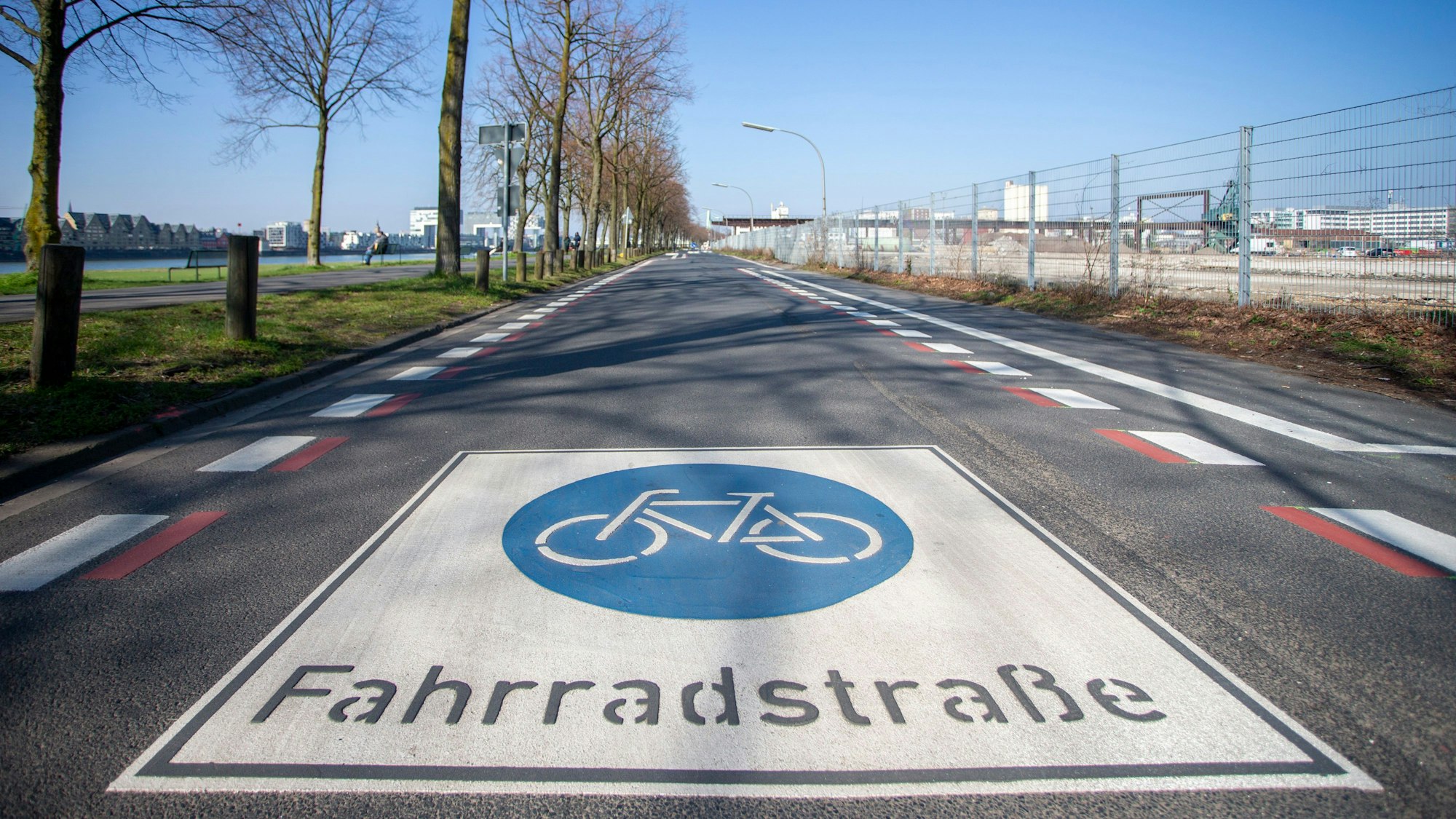 Nördlich der Südbrücke ist auf der Alfred-Schütte-Allee nun eine Fahrradstraße