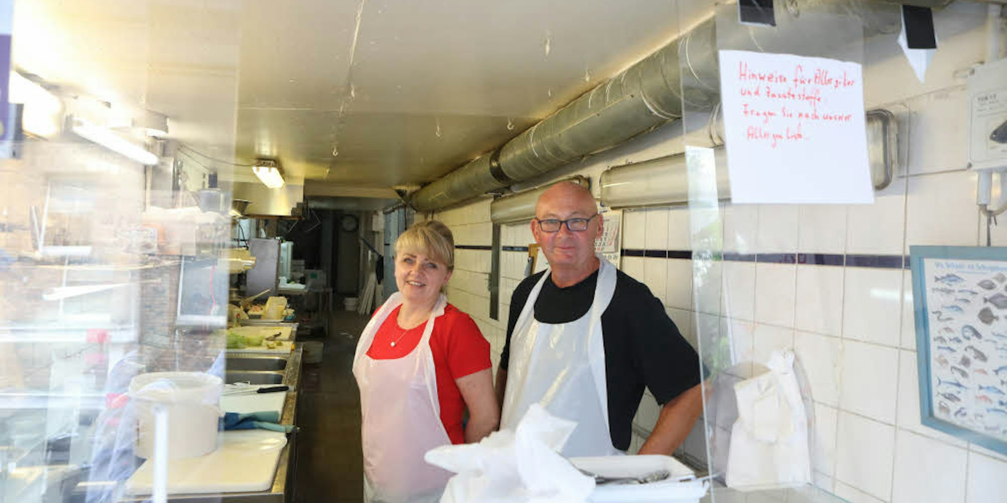 Früher gab es nur eine mobile Theke und ein Rolltor. In der kalten Jahreszeit war das oft geschlossen. An dem Tor hing immer ein Schild. Jeder, der etwas bestellen wollte, sollte daran rappeln oder sich durch rufen bemerkbar machen. Der Grund für das geschlossene Rolltor war einfach: Es zog in dem langgezogenen Geschäft wie die sprichwörtliche Hechtsuppe. Manchmal war die Tageshöchsttemperatur elf Grad. „Aber Minus“. Das Problem mit dem Zug in dem Geschäft, das außer Waschbecken, Fritteuse, Kühlhaus, Büro und Theke nicht groß ausgestattet war, hat Buchholz vor ein paar Jahren gelöst. Die mobile Theke ist einer festen gewichen. Plexiglas sorgte dafür, dass es nicht mehr zieht und die Kunden konnten sehen, dass jemand da war.