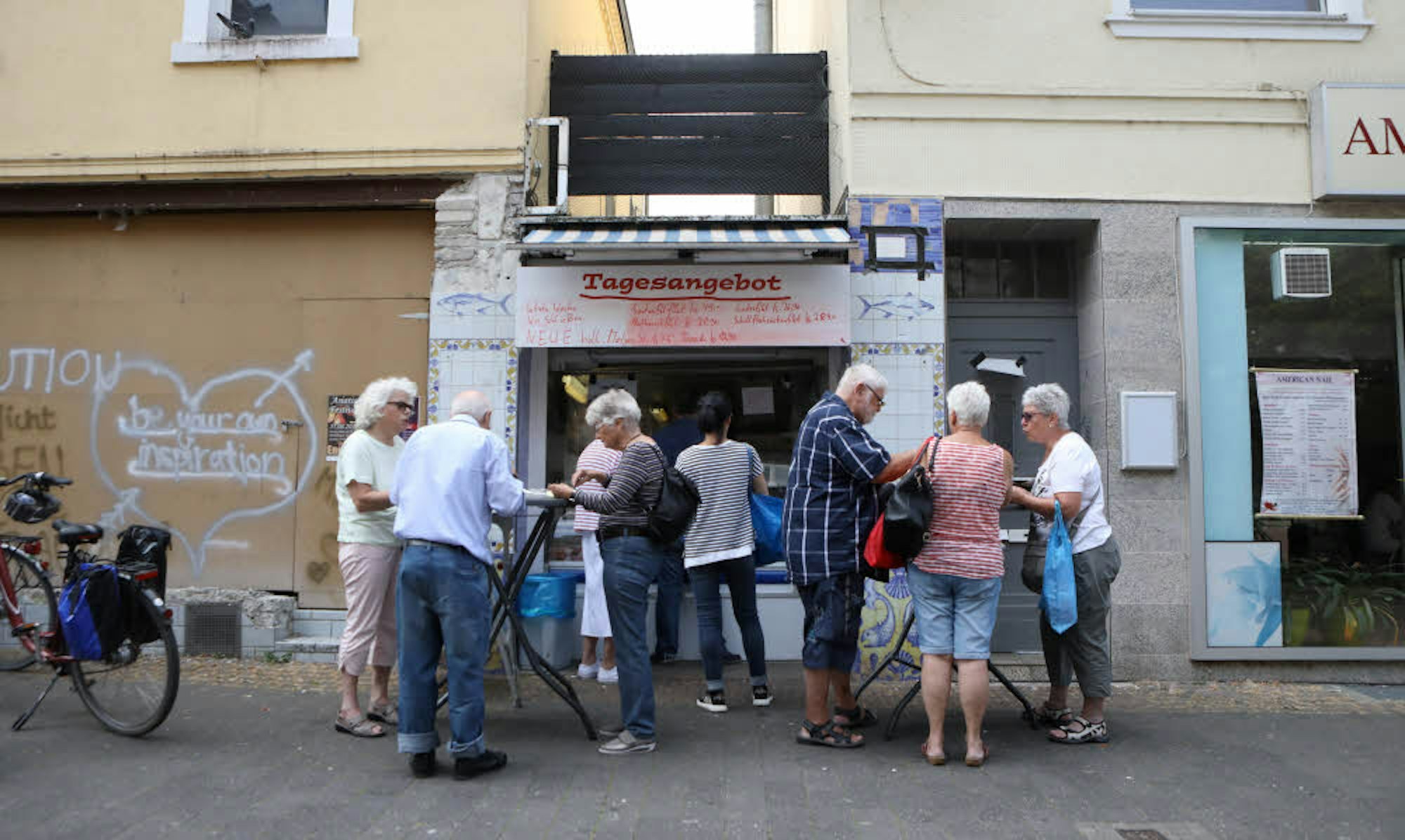Ab sofort kein Fisch mehr an der Bahnhofstraße. Davor hieß das Motto bei den letzten Kunden aber noch „Schlange stehen und anschließend schlemmen“.