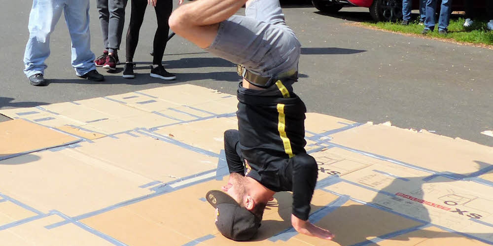 Ein paar Stücke Pappe reichen, dann ist die Bühne bereit: Breakdance vor sachkundigem Publikum.