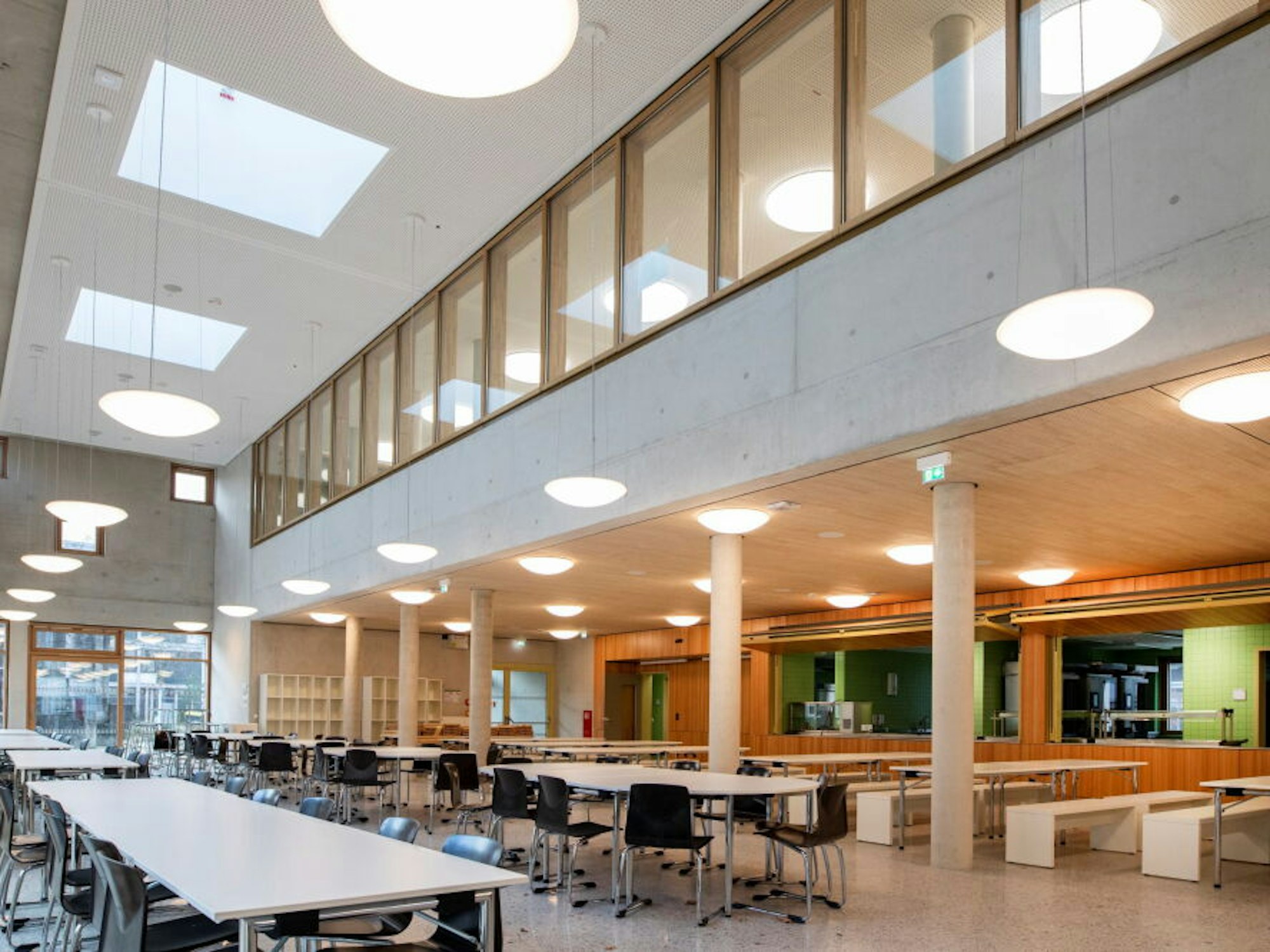 Hohe Decken, viel Licht, modernes Mobiliar: Nicht nur die neue Mensa ist für das Schiller- und das Elisabeth-von-Thüringen-Gymnasium Grund zu großer Freude. Montag startete der Betrieb auch in zwei Neubautrakten für die Erweiterung des Schulstandorts Nikolausstraße in Sülz für beide Gymnasien, die „noch enger zusammenwachsen“, so die Stadt. Dazu gehören die Bibliothek und geräumige Mensa im ersten Trakt, die von Beiden genutzt werden, sowie Klassen- und Ganztagsbereiche fürs EvT. Im zweiten Trakt an der Berrenrather Straße befinden sich Fachräume und Verwaltung des Schiller. Auch Brandschutz und Energieversorgung kamen auf den neuesten Stand. Investitionskosten fürs Projekt nach Entwürfen einer AG der Büros Angelis und Schilling Architekten: 29 Millionen Euro. Dabei waren auch wegen der angespannten Marktlage und Corona-Engpässen große Herausforderungen zu bewältigen. (MW)