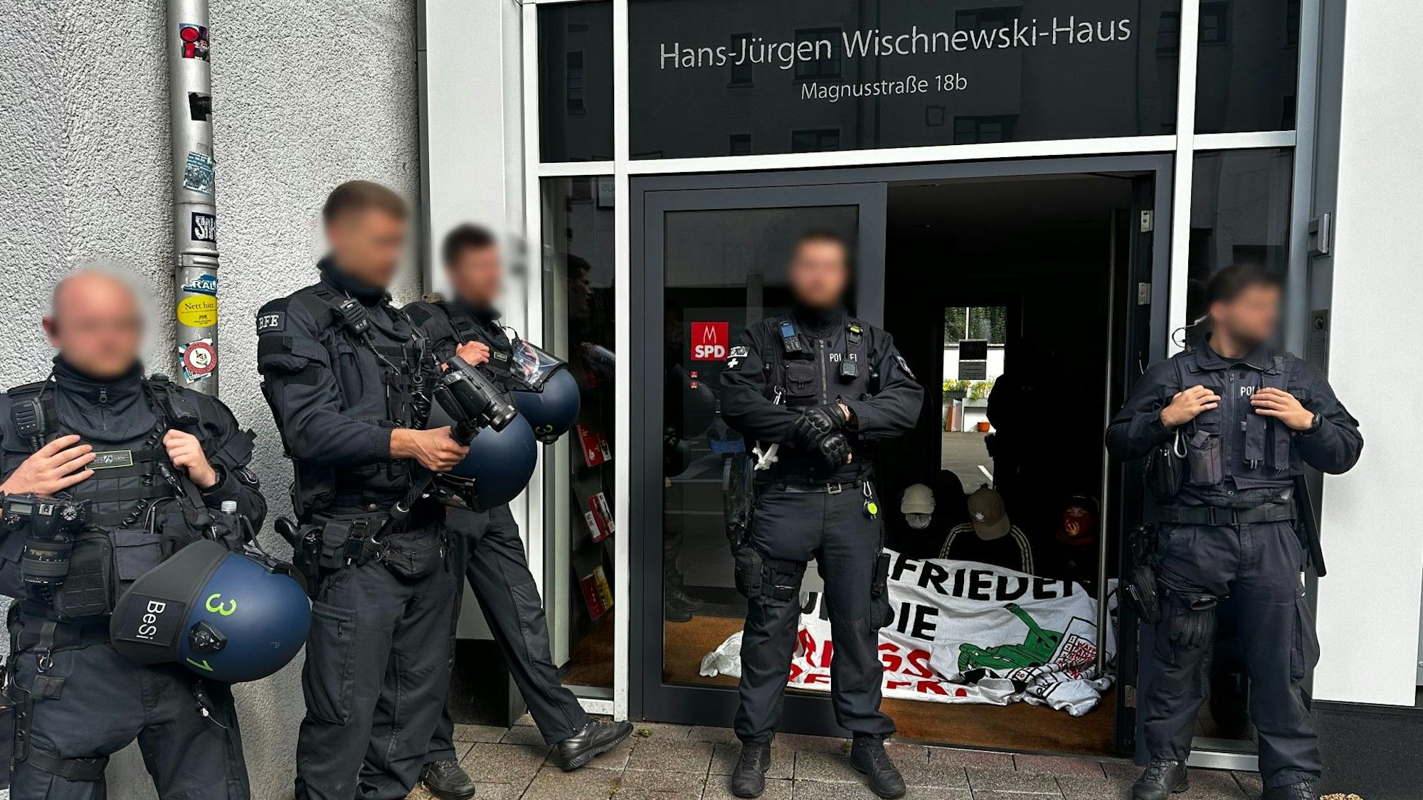 Ein Sprecher der Polizei bestätigt vor Ort, dass sich 15 bis 20 Personen Zutritt zu den Räumen der SPD im „Hans-Jürgen Wischnewki Haus“ verschafft hatten. Sie setzten sich in den Flur und kamen Aufforderungen zum Gehen nicht nach. Beim Heraustragen der Demonstrierenden wehrten sich einzelne heftig.