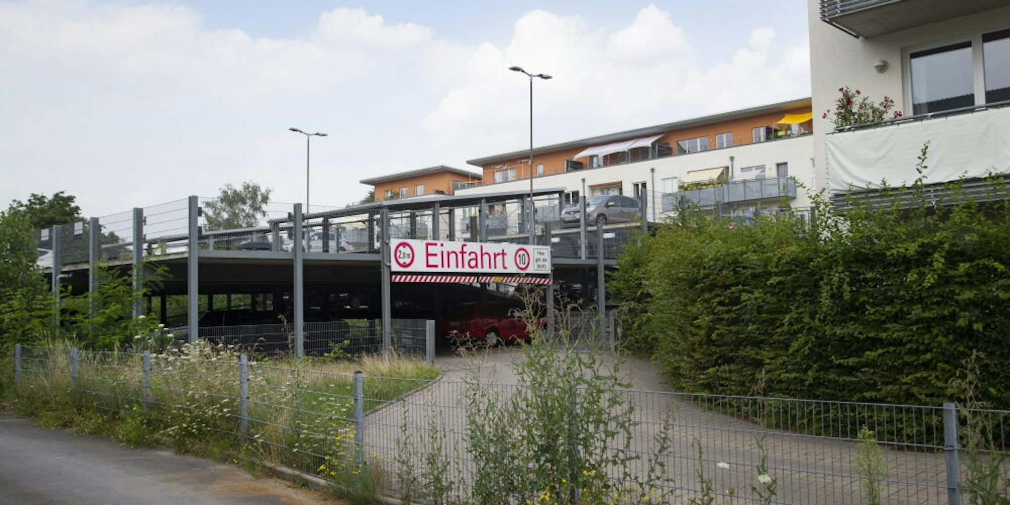 Vorne Garage, hinten Wohnen: Die Quartiersgarage in der autofreien Siedlung in Nippes.