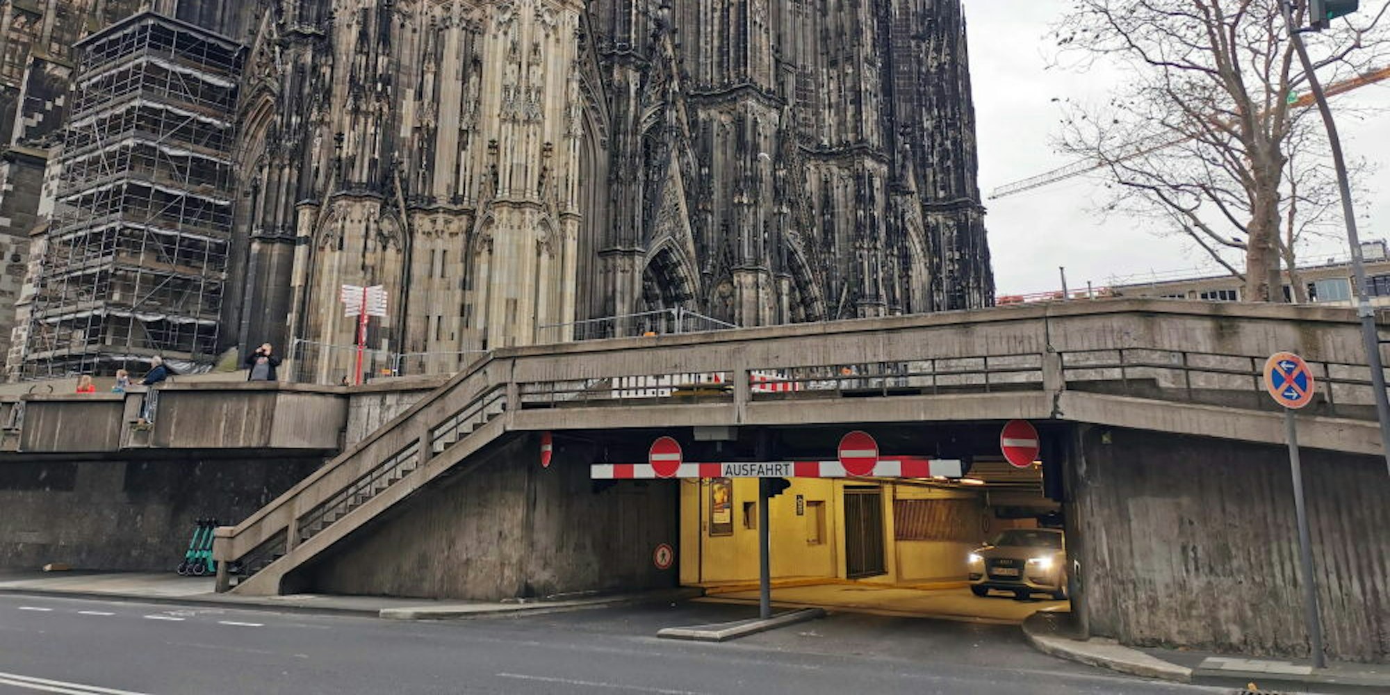 Demnach soll die bisherige Pkw-Ausfahrt an der Trankgasse künftig allein dem Radverkehr vorbehalten sein und von Autos nicht mehr genutzt werden dürfen. Das Parkhaus solle grundsätzlich mit dem Rad befahren werden können, fordern die Grünen. Wo dies mangels Höhe nicht möglich sei, sollen Radfahrer ihr Rad schieben. Autos sollen nur noch die Zufahrt am Kurt-Hackenberg-Platz als Ein- und Ausfahrt nutzen. Eine Durchfahrt in dem geplanten Fahrradbereich soll für Autos nicht mehr möglich sein. Für Radfahrer soll es im Parkhaus Service-Möglichkeiten geben, darunter ein Bereich für kleine Reparaturen sowie eine Reparaturannahme. Mit dem Angebot solle das wilde Abstellen von Fahrrädern im Bereich Trankgasse unterbunden werden, so die Grünen. Sie begründen ihren Antrag mit dem zunehmenden Radverkehr und der steigenden Zahl von E-Bikes und Lastenrädern, für die sichere Parkmöglichkeiten fehlen. Sie verweisen auf niederländische Beispiele. Abstellmöglichkeiten nördlich des Hauptbahnhofs, wo auch die Radstation liegt, würden wegen der Umwege beim Gang in Richtung Hohe Straße/City nicht so gut angenommen. Das Ratsbündnis aus Grünen, CDU und Volt will zudem in einer Studie prüfen, ob auch in anderen Parkhäusern auch Fahrräder abgestellt werden können. (fu)