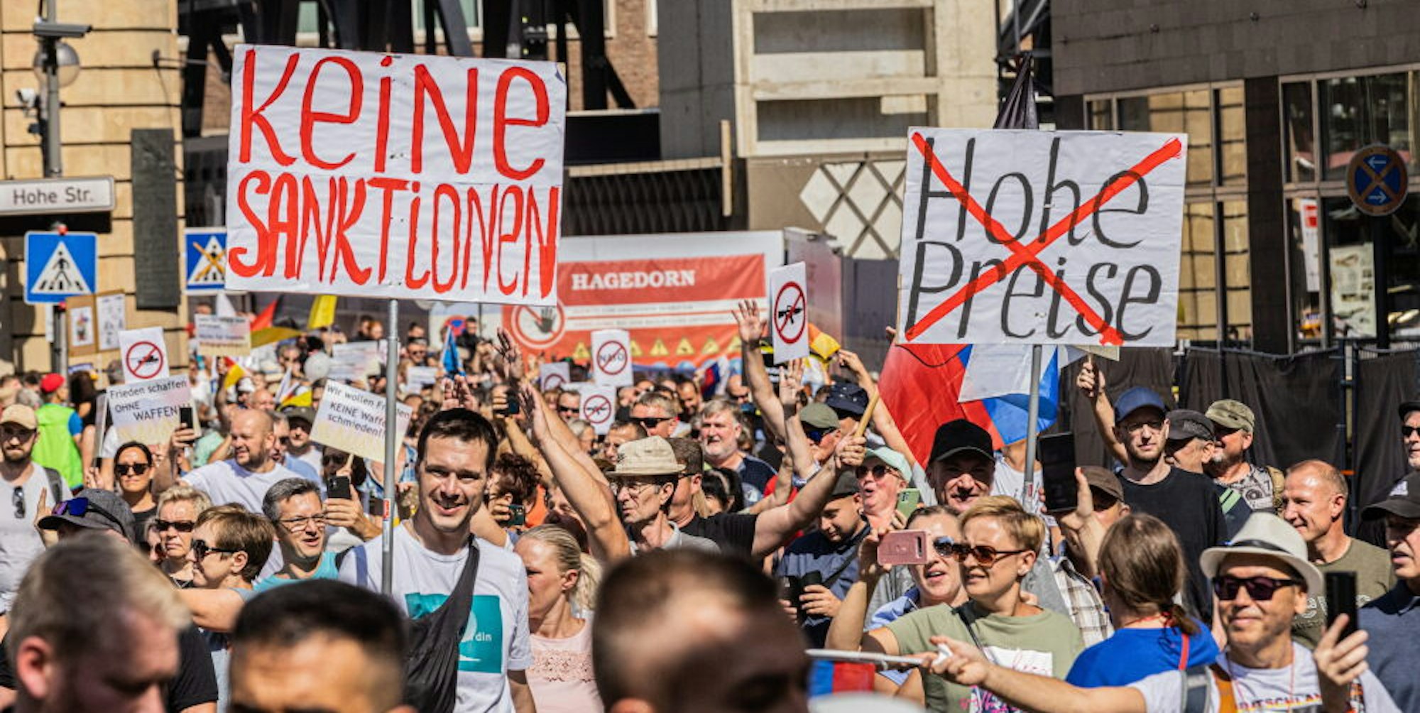 Sehr uneinheitlich waren die Forderungen der Menschen im Demonstrationszug. Sie richteten sich nicht nur auf ein Ende des Krieges, sondern gegen Sanktionen, Preiserhöhungen und Coronaimpfungen.