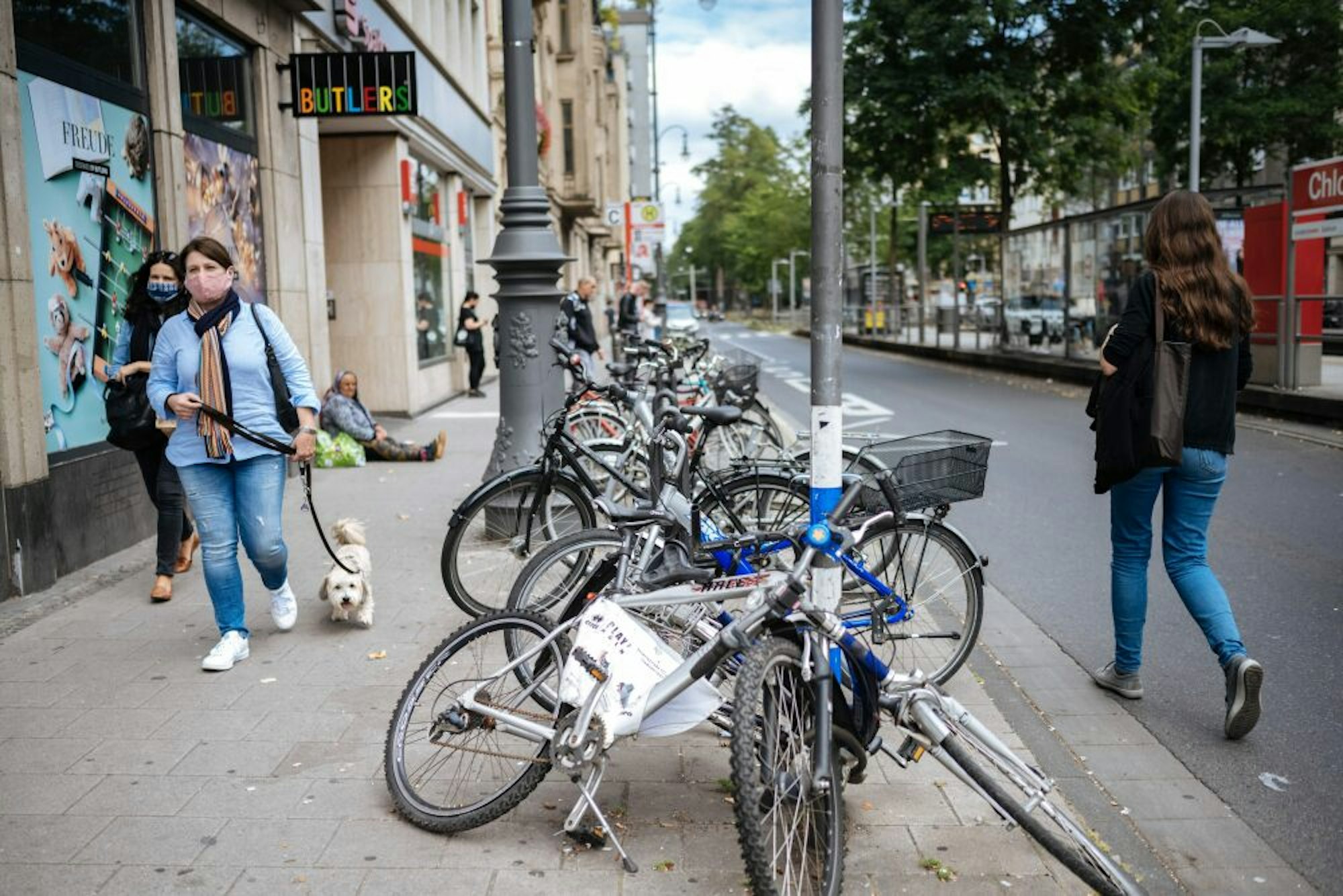 Bürgersteige werden mit Fahrrädern zugestellt.