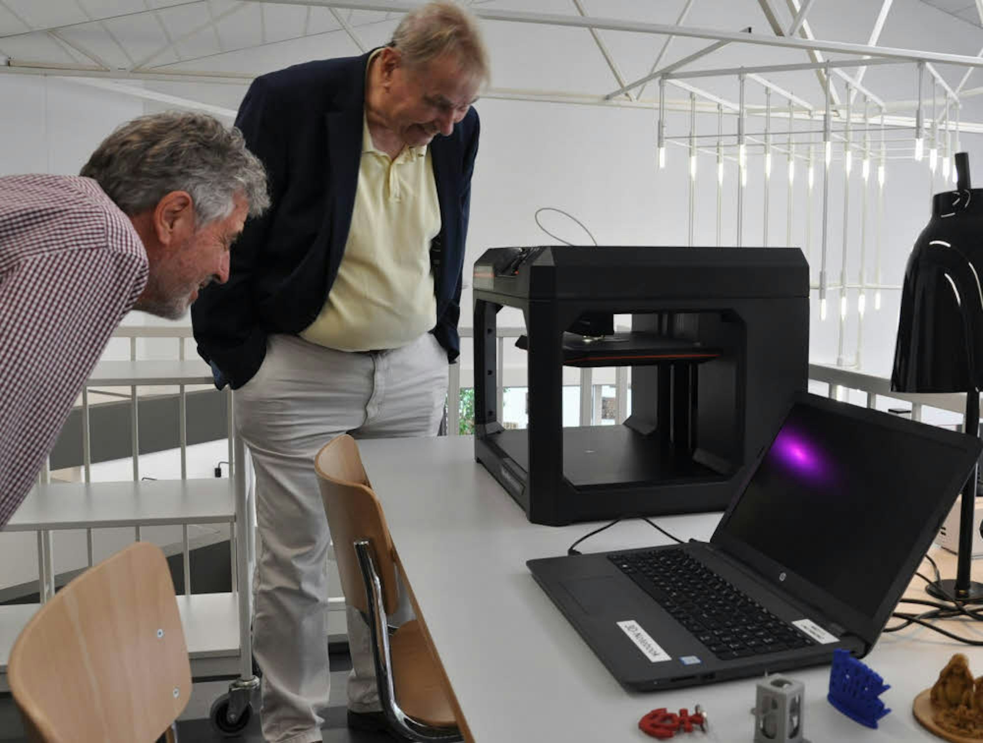 Mit Anglizismen geht es auch auf der oberen Etage weiter, wo mit kleinem Budget moderne „Workstations“ installiert wurden. Es geht hier nicht nur um W-Lan. Moderne Anschlüsse samt USB sorgen für eine möglichst freie Arbeitsgestaltung. Den eigenen Laptop mitzubringen, ist explizit gewünscht: „Wir brauchen Lernflächen, genau wie Cafés das heute bieten, einen ,maker space’“, meint Höft. Abgerundet wird das Angebot deshalb auch durch einen 3D-Drucker, den die Besucher nach einer entsprechenden Einweisung selbstständig nutzen können.