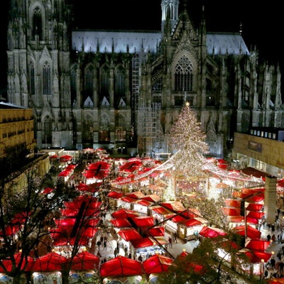 Wenn beim Weihnachtsmarkt 2021 auf dem Roncalliplatz die Lichter ausgehen, wird das ausgediente Herzstück zersägt und als Knabberzeugs an Tiere im Kölner Zoo verfüttert. (uwe) Foto: Nabil Hanano