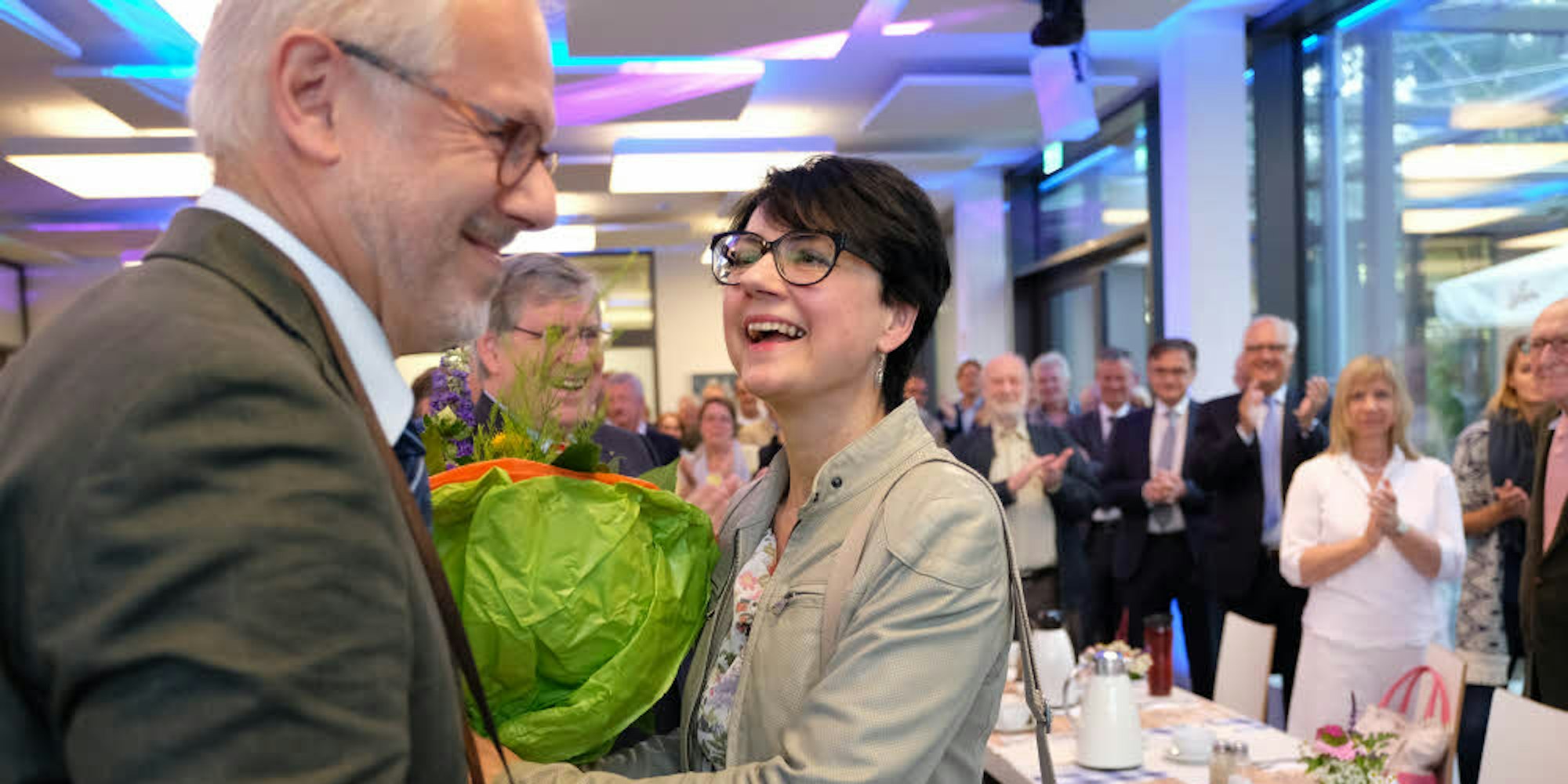 Mit dem Zoo muss Iris Pagel ihren Mann Theo teilen. Zum Dienstjubiläum gab es daher vom Jubilar Blumen und einen besonderen Dank an seine Frau und die beiden Töchter.