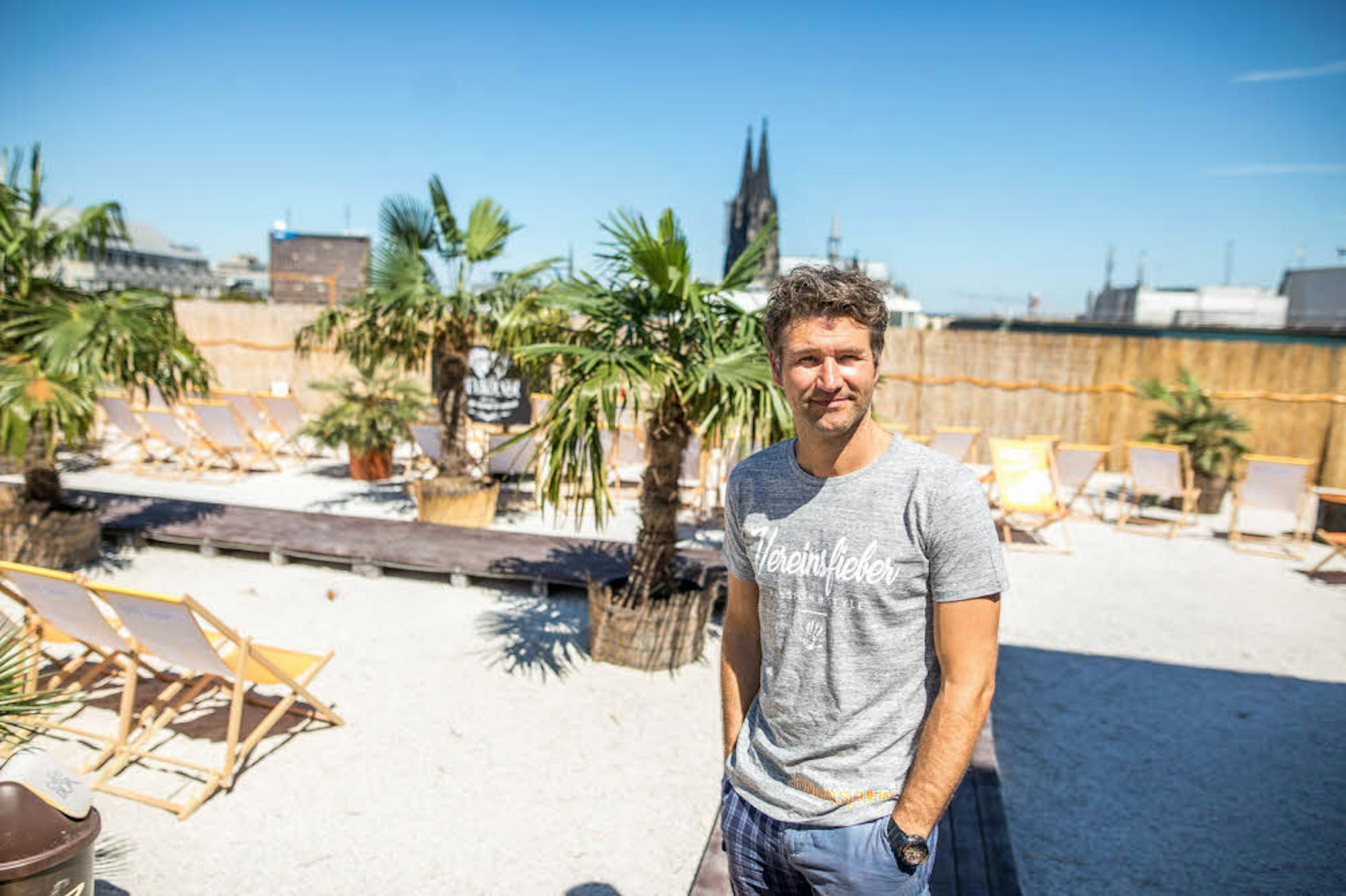 Der Ort ist natürlich ungewöhnlich: Eine Beachbar auf einem Parkhausdach stellt auch die verschiedenen Ämter innerhalb der Stadtverwaltung vor eine Herausforderung. Zumindest, wenn es das erste Mal wäre, dass dort eine Gastronomie öffnen soll. Für Andreas Keunecke, der die „Sonnenscheinetage“ mit Vater und Bruder als Familienunternehmen betreibt, ist es allerdings die zehnte Saison. Sechs Jahre lang war seine Bar ein paar hundert Meter weiter auf dem früheren Parkhaus gegenüber dem Museum Schnütgen. Nach dem Abriss des Gebäudes zog er 2015 auf den Kaufhof um. Aber noch nie gab es so viel Stress wie jetzt.
