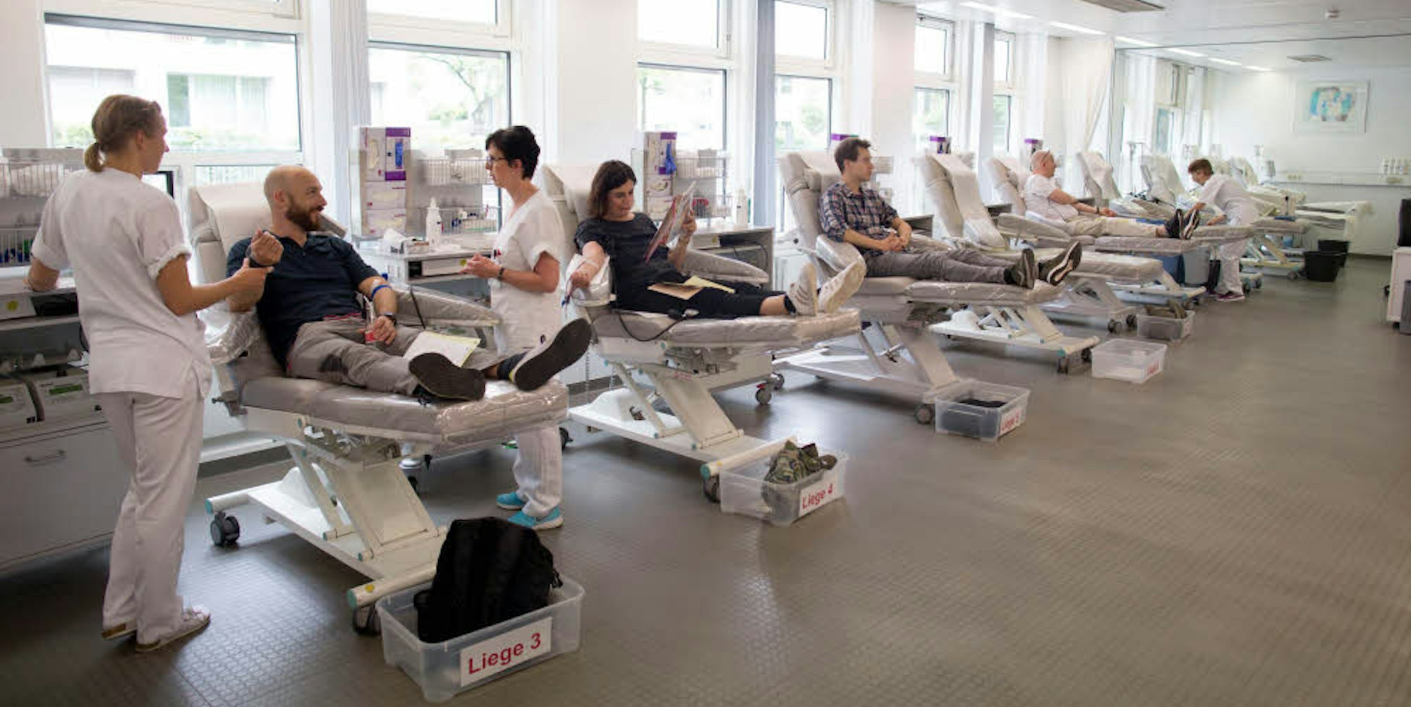 Alle Spenden, die im Blutspendezentrum in Gebäude 39 der Kölner Uniklinik abgegeben werden, gehen an Patienten der Uniklinik. Doch was kann im schlimmsten Falle passieren, wenn sich drückende Temperaturen im Sommer auch auf die Spendebereitschaft auswirken? „Wenn wir keine Spenden bekommen, dann können wir unsere Patienten nicht versorgen. Das kann dazu führen, dass wir im härtesten Fall Operationen verschieben müssten“, erklärt Gathof, relativiert aber auch: