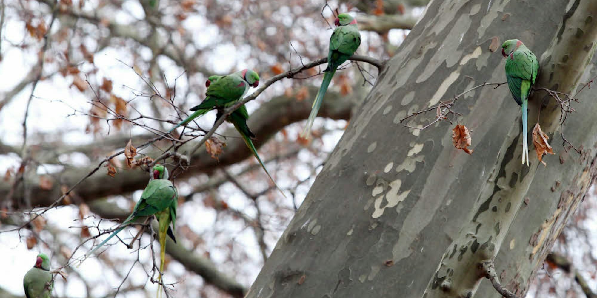 Zu Hunderten versammeln sich die Halsbandsittiche allabendlich in den Bäumen an der Kreuzung Dreikönigenstraße/Bayenstraße. Anwohner und Gastronomen leiden darunter. Jetzt soll dem bunten Treiben ein Ende gesetzt werden.