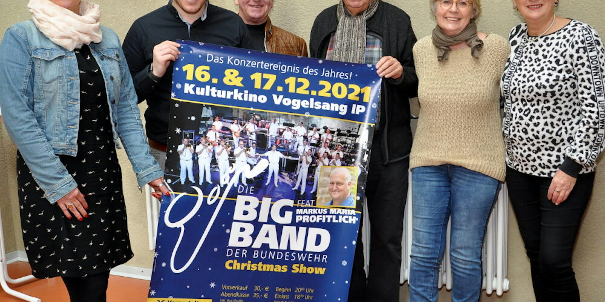 Stellten das Programm der Christmas-Show der Big Band der Bundeswehr in Vogelsang vor: Birgit Linden (Vogelsang ip/v.l.), Landrat Markus Ramers sowie Paul Schneider, Willi Greuel, Kathi Greuel und Damar Poth von der Hilfsgruppe Eifel.