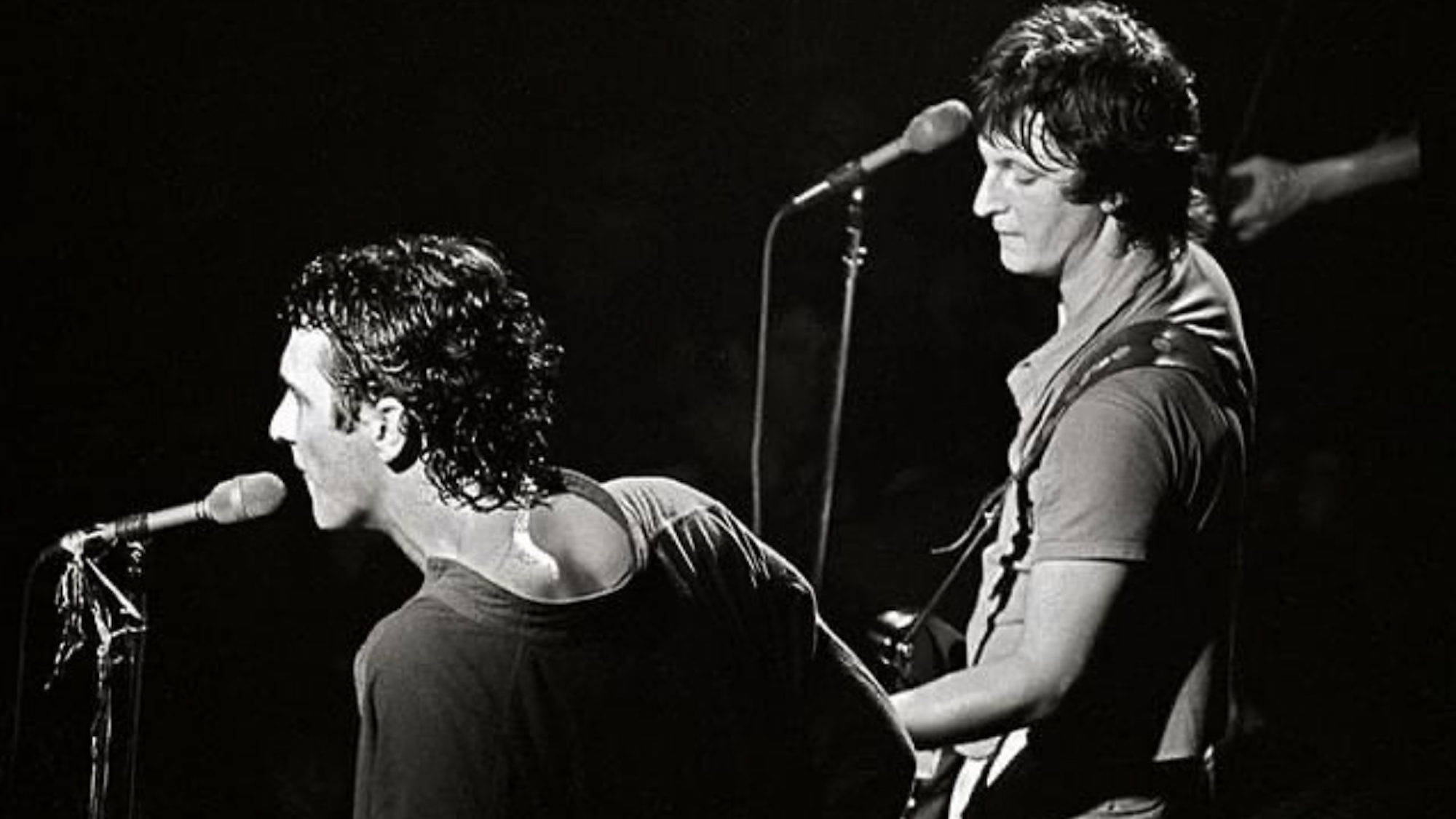 Die Gang of Four-Mitglieder Jon King (links) & Dave Allen (rechts) auf einer älteren Aufnahme