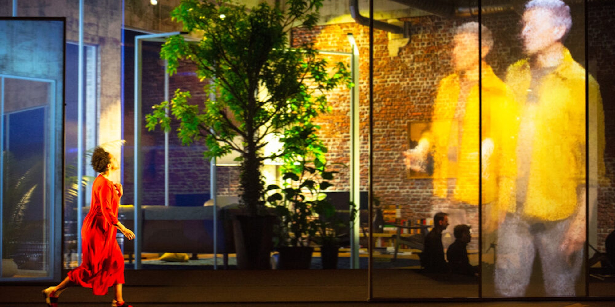 Möglich macht diese Mischung aus Film, Theater und grandioser technischer Umsetzung das Multi-Talent des Niederländers Michel van der Aa, der hier als Komponist, Librettist, Regisseur für Film und Bühne verantwortlich zeichnet. Dazu besitzt er als studierter Tontechniker auch Realisierungserfahrung, er kann das Mögliche erahnen und umsetzen. Bühnenbauten existieren nur virtuell, bewegliche Bildschirmwände öffnen Räume und transportieren live aufgenommene Personen: Auf dieser Bühne wird das Beamen Wirklichkeit.