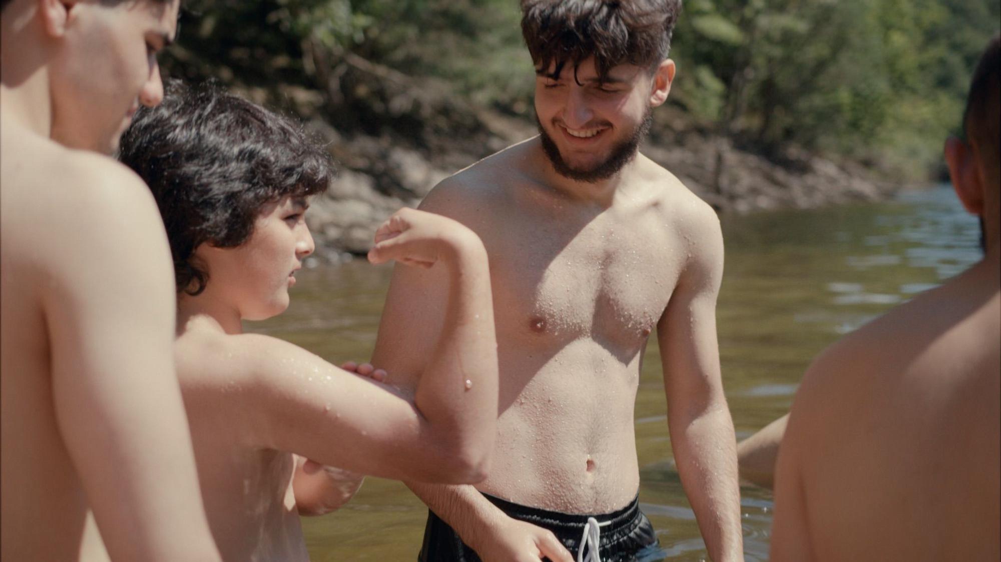 Die beiden anderen KHM-Kurzfilme, die ab 29. April in Oberhausen gezeigt werden, sind eher internationale Produktionen – und treffen damit gleichermaßen den Anspruch von Festival und Kunsthochschule. „Eine Tochter und zehn Söhne“, ein Dokumentarfilm von Finn Ole Weigt und Paula Milena Weise, spielt in Kirgisistan und begleitet zwei beste Freundinnen bei einer Abschiedsrunde durch ihre Heimatstadt. Eine der beiden hat in der staatlichen Lotterie eine Greencard für die USA gewonnen, und so klappern sie noch einmal gemeinsam die Orte ihrer Jugend ab. Einem westlichen Beobachter erscheinen diese wie Ansichtskarten postsowjetischer Schwermut – auch die etwas klägliche Probe zu einer Parade darf dabei nicht fehlen.
