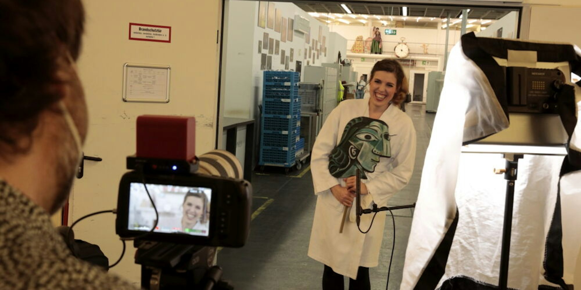 Charlotte Wulff fällt die Aufgabe zu, die Inszenierung von Emmanuelle Bastet auf Corona zu trimmen – und schon der kleinen Einblicke in einzelne Szenen, die der Film gewährt, zeigen, dass sie viele witzige Ideen hat. Da wird durch einen durchsichtigen Duschvorhang angebändelt und anstatt sich Figaro und Susanne in einem Bett tummeln, vollführen sie mit einer Matratze Kapriolen, in denen es um Annähern und Abwehren geht. Und an anderer Stelle wird keine Ohrfeige verpasst, sondern ein Schuh geworfen. Der Effekt ist derselbe.