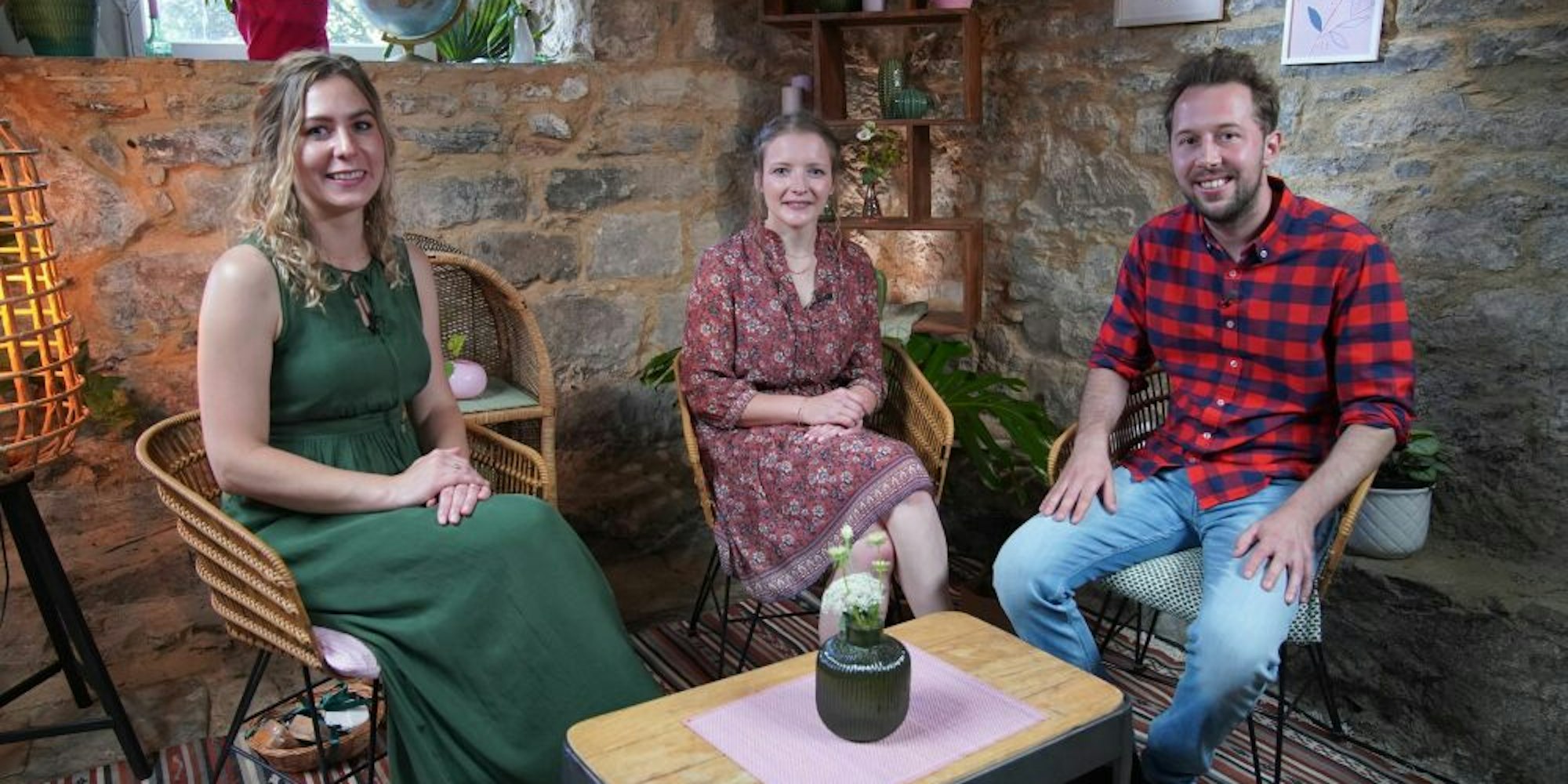 Das Kraftzentrum ist für diesen Tag die Scheune, ein Fachwerkbau mit historischem Gebälk unter roten Ziegeln. Stoffbahnen unterteilen den Raum in zwei Hälften: Vor der Kamera ergießt sich ein Blumenmeer, in dem Inka Bause gleich Bauern und Frauen zusammenführt; hinter den Tüchern ist ein Regieraum improvisiert. Hier sitzen Regisseur, Produzentin und die RTL-Redakteurin vor einem Flachbildschirm. Er zeigt, ob die insgesamt 18 Kamera-Teams dieses Tages auch immer den richtigen der Bauern im Bild haben.