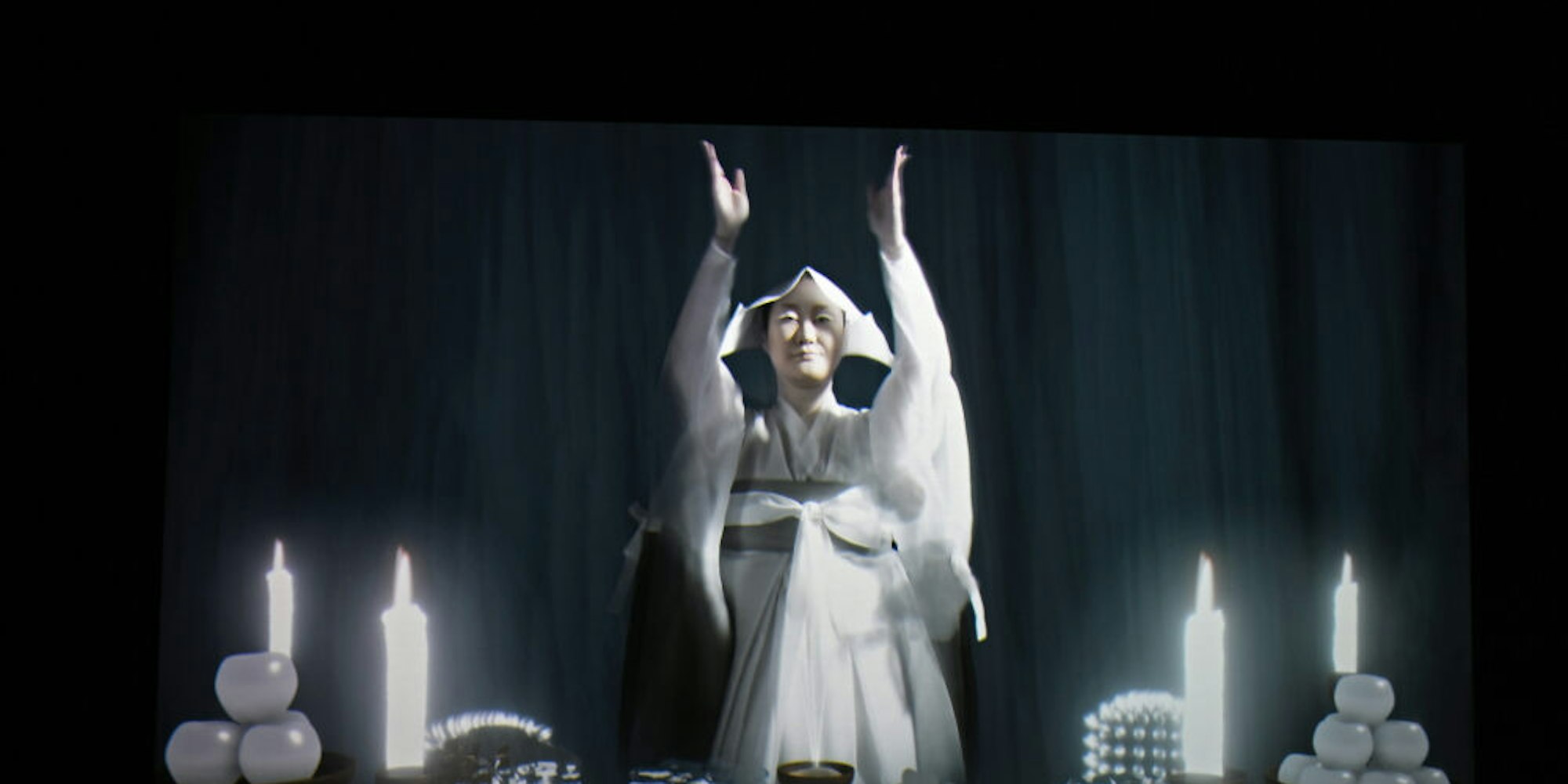 Die Beschäftigung mit der Natur mündet unweigerlich in eine politischen Dimension. Mit ihrer großen Rauminstallation „An Uncontacted Tribe“ inszeniert die aus Seoul stammende Künstlerin Hanna Noh die komplexe Beziehung zwischen der Magie der Schamaninnen und der politischen Realitäten ihrer Heimat. Im Zentrum ihrer in strengem Schwarz-weiß gehaltenen Filmbilder steht der Rotkronenkranich, ein Symbol koreanischer Kultur.