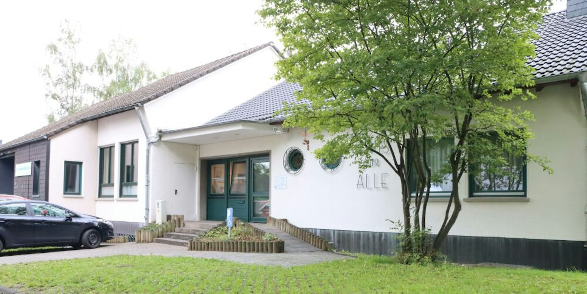 Der überdachte Eingang am „Haus für Alle“ in Eichen ist ein beliebter Treffpunkt für Jugendliche und junge Erwachsene.