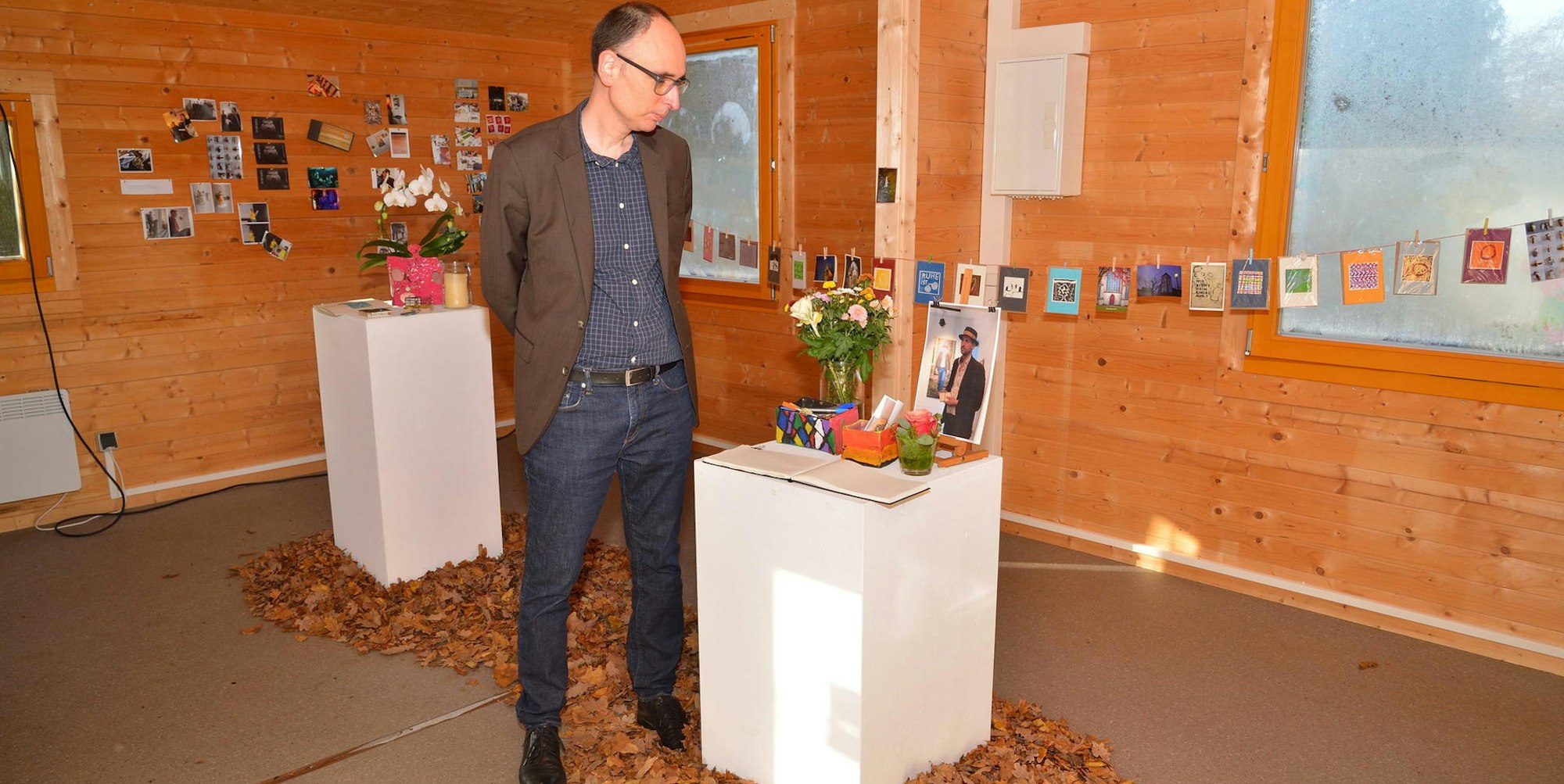 Bunt, licht und warm wirkt hier alles, im kleinen Blockhaus auf dem Gelände des Schulzentrums. Und doch ist es ein Trauerraum. Mit ihm erinnert das Gymnasium an Georg Wißkirchen. Wie berichtet, ist der beliebte Lehrer für Kunst und Religion vor wenigen Tagen im Alter von 51 Jahren gestorben.