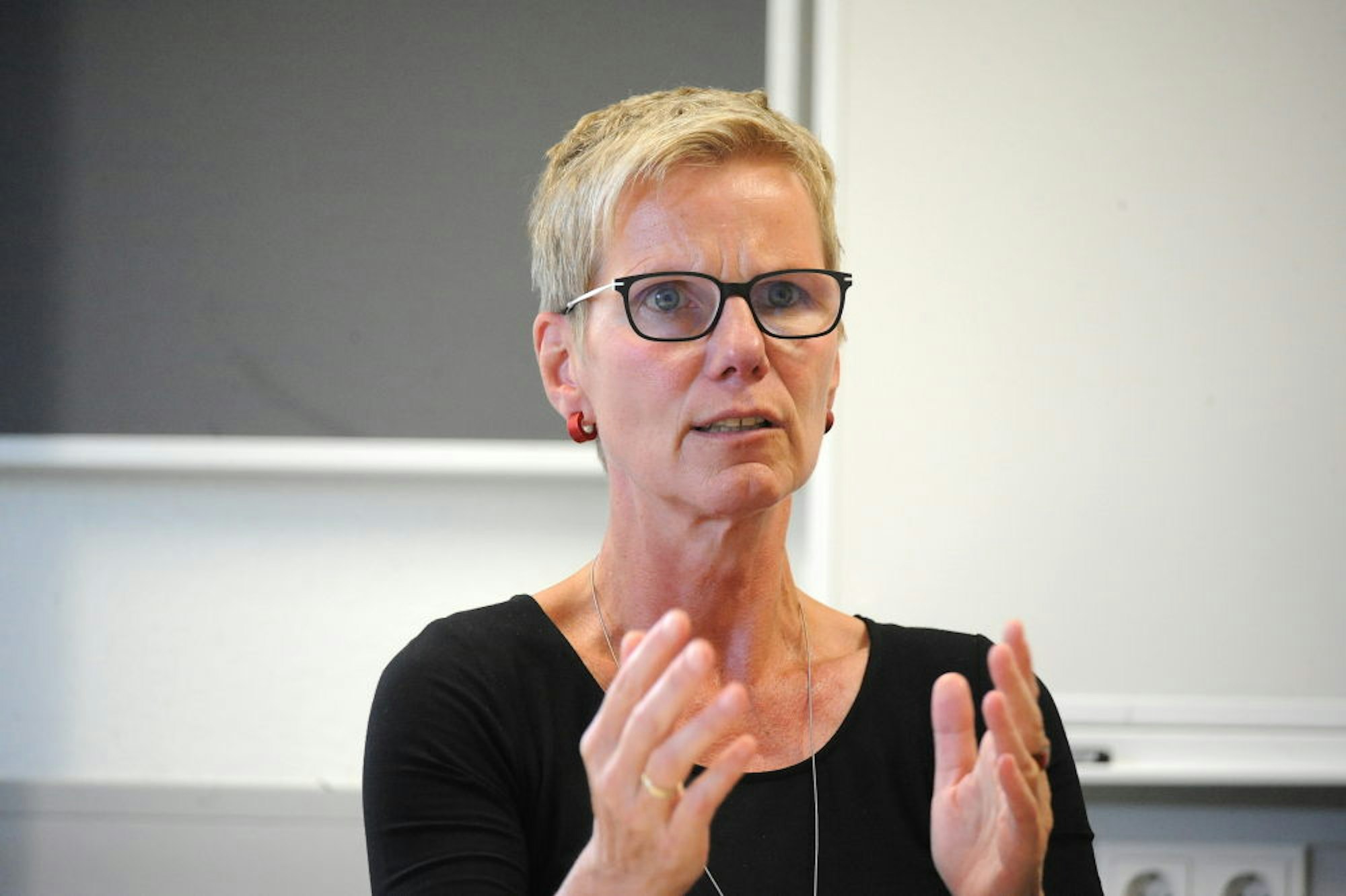 Lehrerin Silke Denef-Tauber (l) leitet den Pia-Bildungsgang und unterrichtet die Klasse