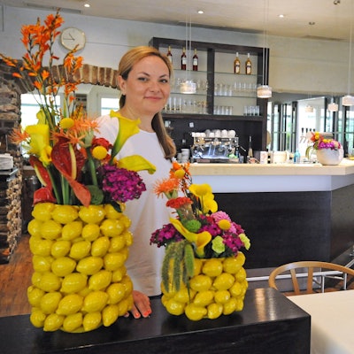 Cool trifft auch die Innenausstattung des Restaurants: Alte Holzbalken und dunkle Tische gepaart mit bunten Stühlen in lila, türkis und grün. Dazu modernster Dekoration von den futuristischen Deckenlampen bis zum Kunstgrün hinter Glas. Die lila beleuchtete Bar rückt Wein- und Spirituosenflaschen in den Blick. 60 Innensitzplätze hat das Restaurant, einige davon an der Fensterfront, die sich komplett aufschieben lässt.