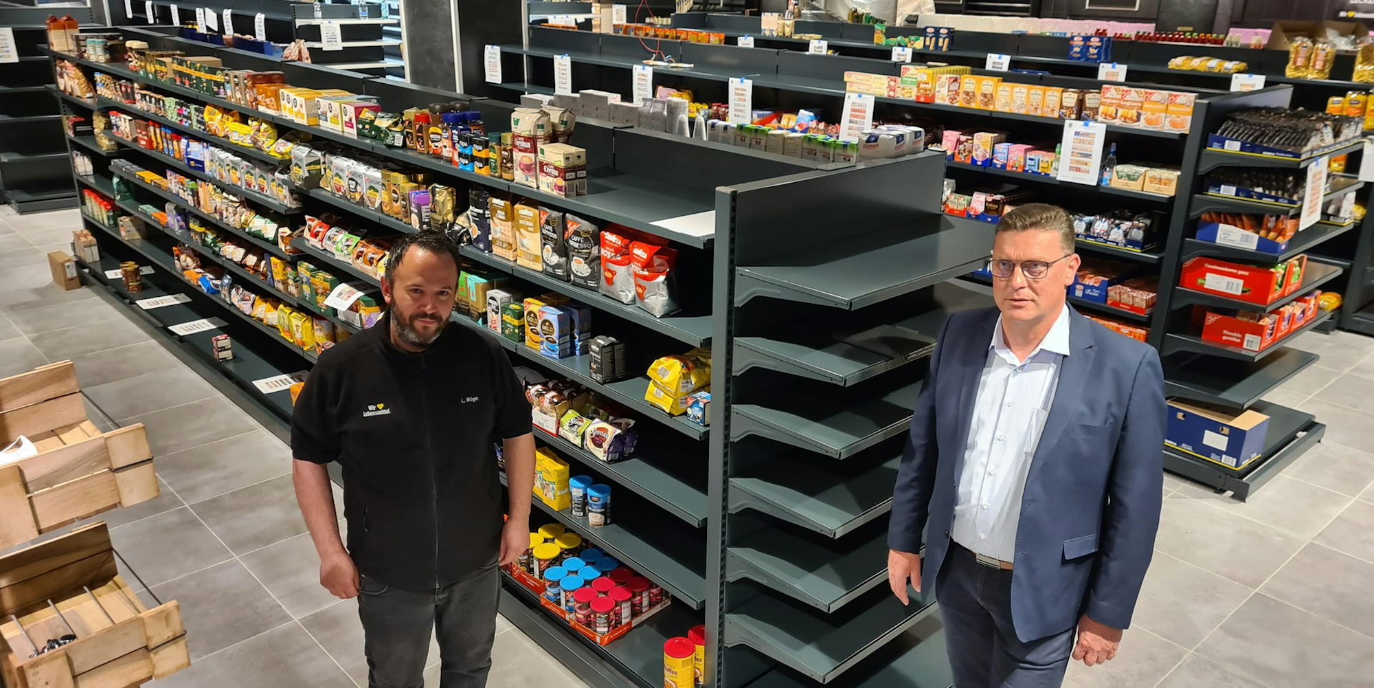 Marktleiter Levent Bilgin (l.) und Edeka-Bezirksleiter Stefan Bougie im neuen Supermarkt.