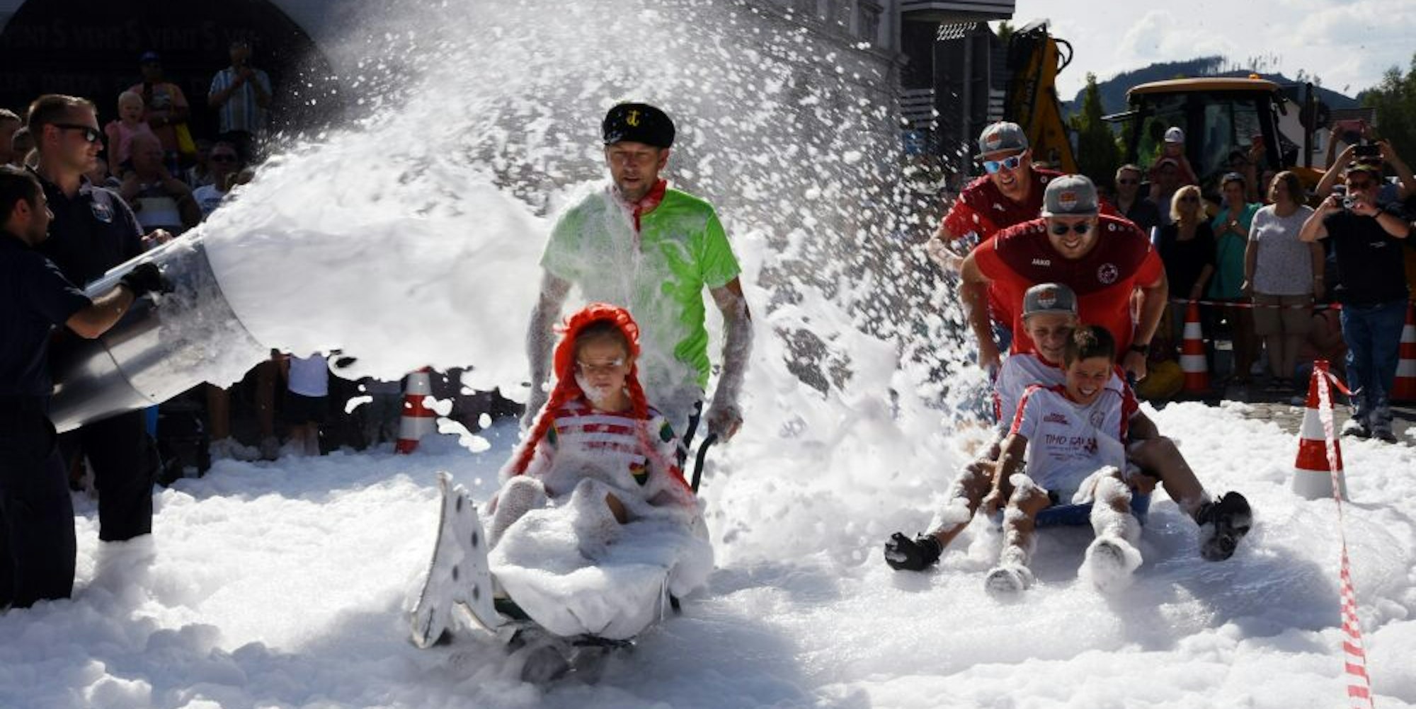 Feucht-schaumiges VergnügenMorsbacher freuten sich über Schubkarrenrennen
