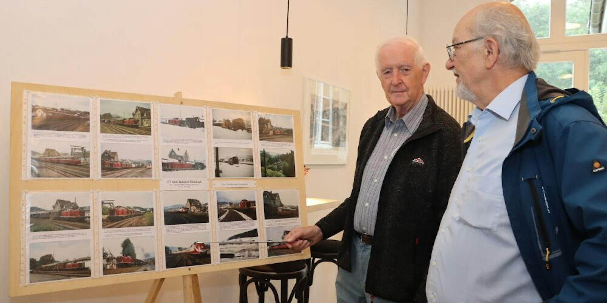 Bahnexperte Horst Kowalski (l.) hatte aus Bergneustadt alte Bilder und Anekdoten mitgebracht.