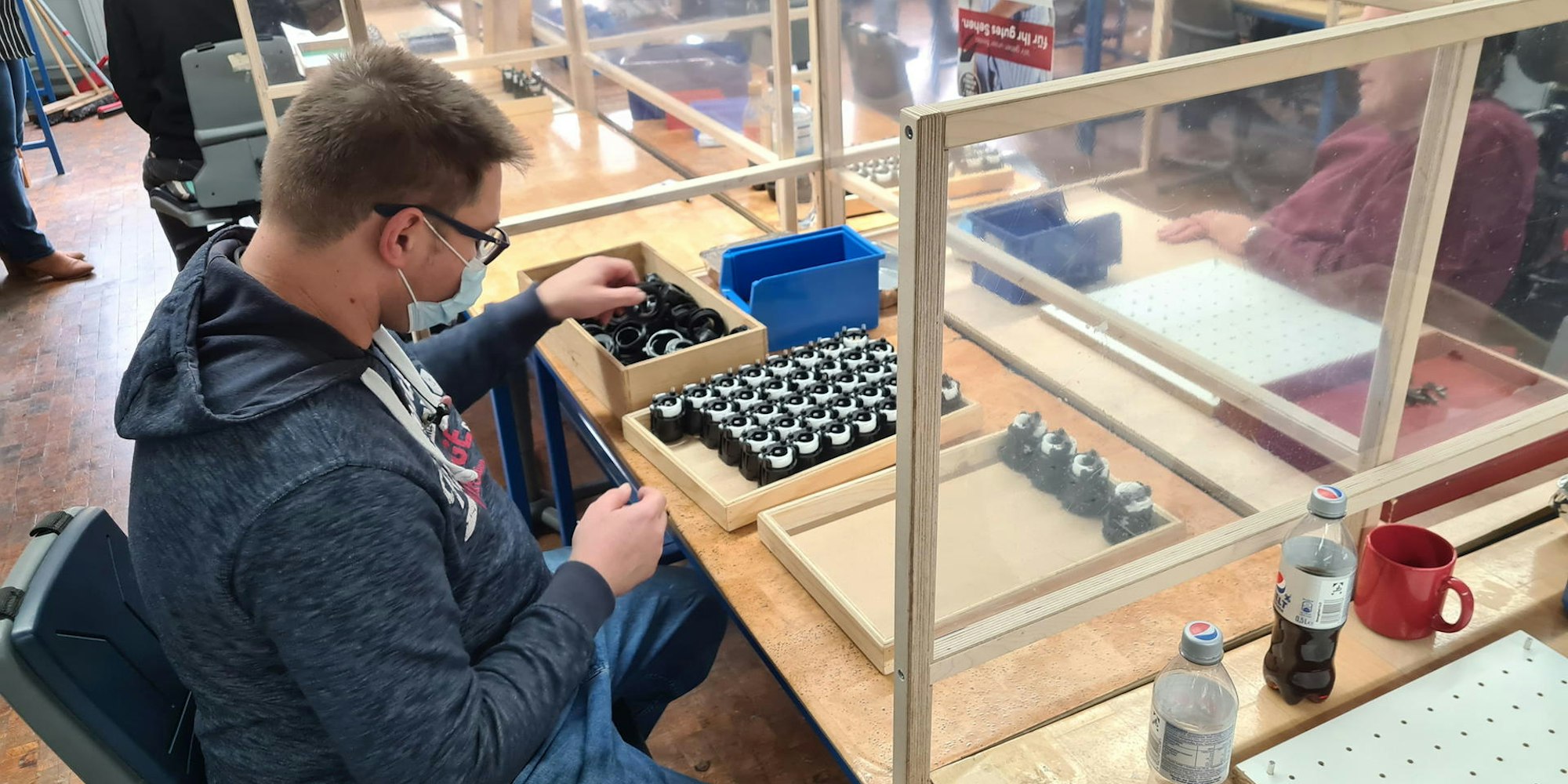 Bergheim/Brühl – Mario Maassen demonstriert, wie aufwendig das Zusammenbasteln der Tankdeckel ist. Mehrere Federn und Plastikteile sind in vielen Schritten zusammenzustellen, bis die „Zapfpistolenführung“ für Autos eines namhaften Herstellers fertig ist. Eine ganze Palette voll davon mit 4800 Stück entsteht in der Werkstatt der Bergheimer Reha-Betriebe pro Woche, alles in Handarbeit. „Wir sind hier wie eine große Familie“, sagt Maassen, der jüngst wieder in den Werkstattrat gewählt wurde.