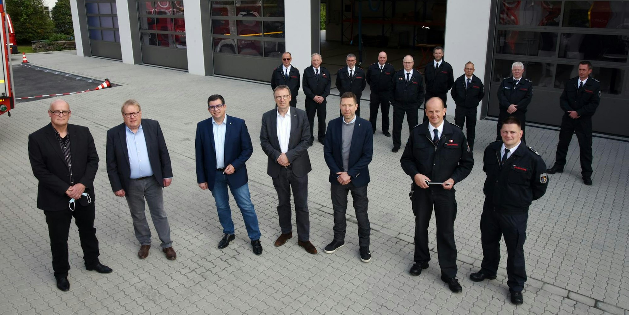 Wehrführung sowie Stadt- und GWG-Spitze kamen zu den Kameraden nach Niedergelpe , um dort die offizielle Einweihung des neuen Gerätehauses des Löschzugs Hülsbach zu feiern.