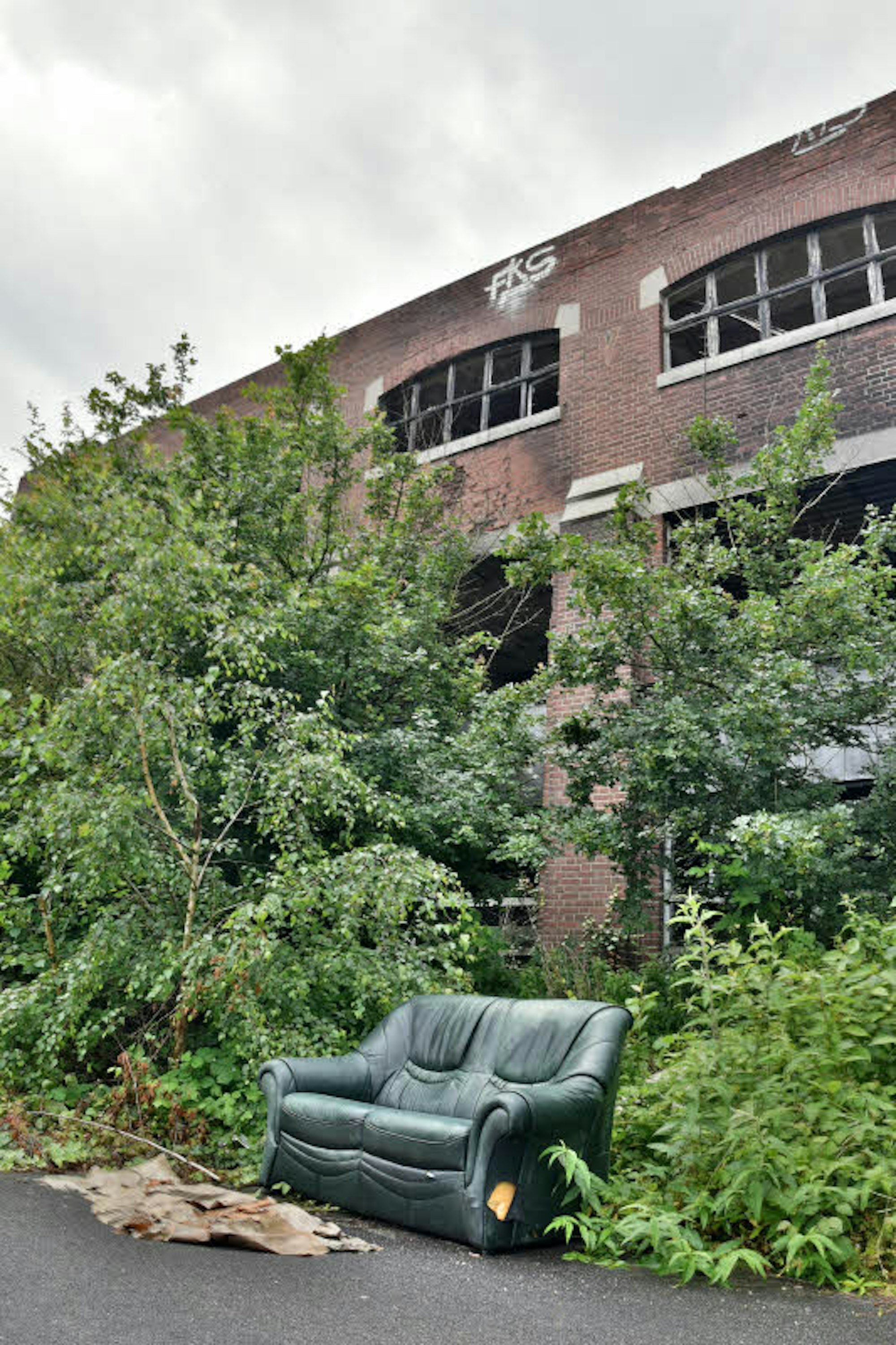 Hier kann man es sich sogar bequem machen: Unbekannte haben vor dem Hauptgebäude der Norton-Werke ein altes Sofa abgestellt.