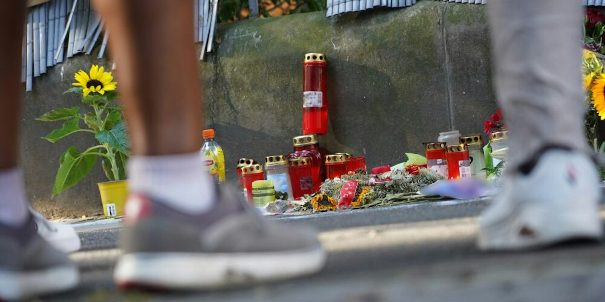 Trauer und Wut in Dortmund: Vor dem Gelände des Jugendzentrums, auf dem Mouhamed D. starb, erinnern Kerzen und Blumen an den Tod des 16-Jährigen.