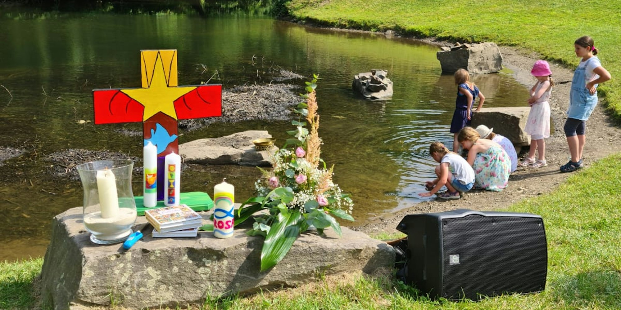 Die Kirchengemeinde Hülsenbusch–Kotthausen veranstaltete Ende Juni eine Taufe auf der Wiese am Hülsbach. „Das sind immer ganz besondere Gottesdienste“, sagt Pfarrerin Alexandra Pook und freut sich über die gestiegene Nachfrage nach Taufen. Vor allem die Taufe der Kirchengemeinde Drabenderhöhe, die im Juni vergangenen Jahres in Forst am Dorfweiher stattfand, habe viele Eltern begeistert, sodass sie ihre Kinder ebenfalls für eine Taufe am Weiher anmeldeten.