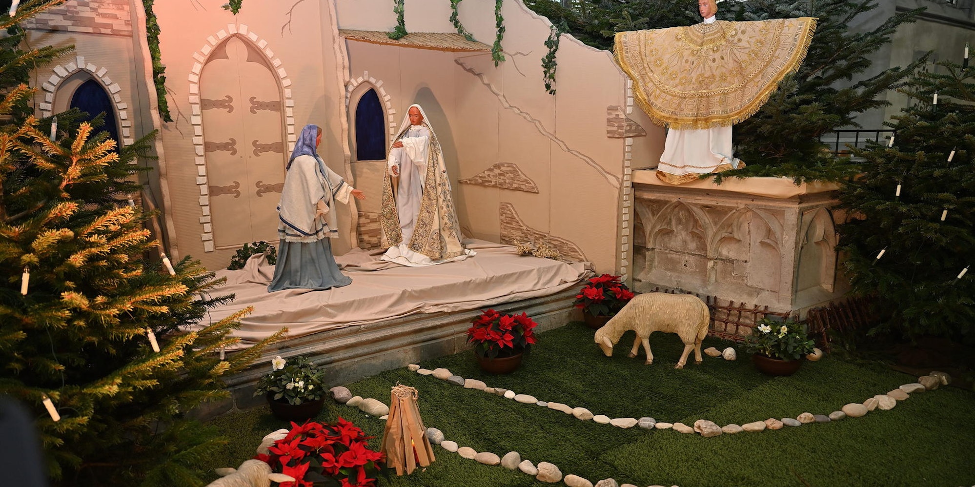 Die alte Krippe hatte ihren Ursprung in den 40er Jahren des 20. Jahrhunderts. Zwar gab es bereits schon einige Jahre vorher eine Krippendarstellung im Dom, deren Figuren waren allerdings noch aus Gips und unbeweglich.