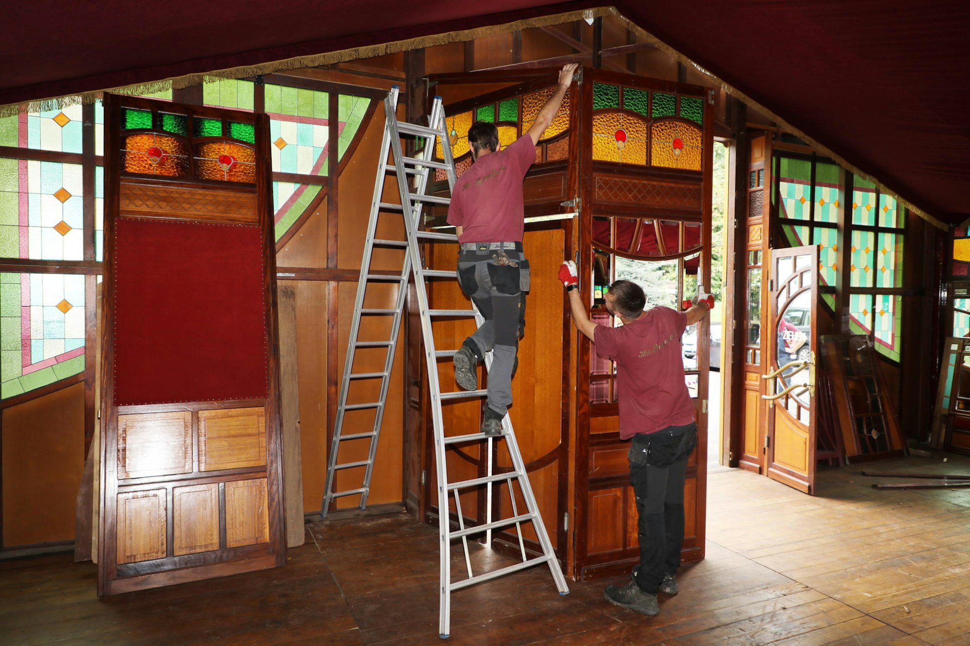 „Die 45 Tonnen waren 18 Monate in den zwei Containern verstaut, aber es ist alles in Ordnung“, sagt er zufrieden. Von Nordamerika bis Australien – das nostalgische Zelt ist schon rund um den Globus verschifft und aufgebaut worden. „Und jetzt wird es wieder die Gäste in Altenberg verzaubern“ sagt Adriaan Nijkamp strahlend. „Bei Markus Wißkirchen können die Menschen entdecken, was hier an Kultur wieder alles möglich ist.“