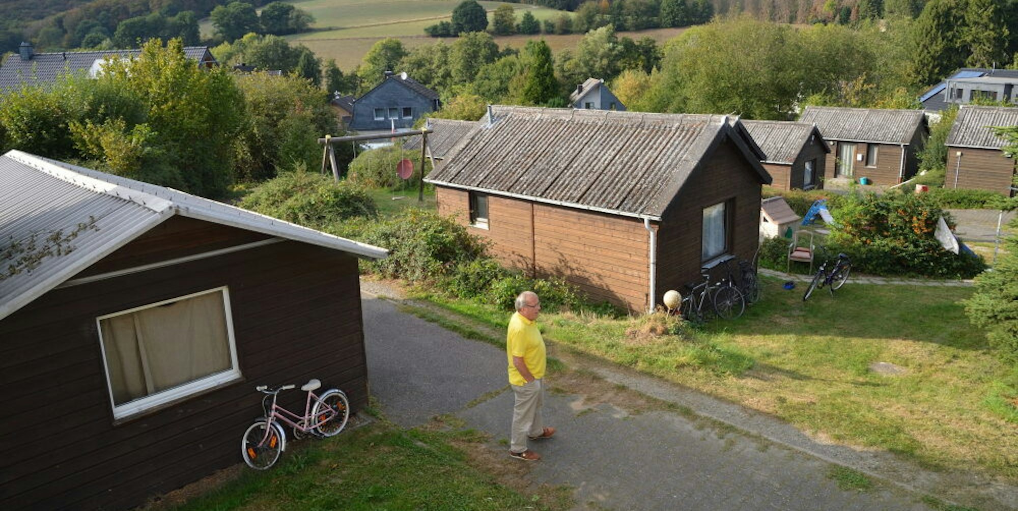 „Wir als Awo-Ortsverein wollten damals übernehmen und die Anlage in Eigenregie betreiben“, sagt Mettig. Den Zuschlag bekamen sie aber nicht, stattdessen wurde verkauft, die Häuschen verfielen in der Folge weiter, bis schließlich die Gemeinde Odenthal auf dem Höhepunkt der Flüchtlingskrise das gesamte Areal anmietete, die Holzhäuschen renovierte und als Unterkünfte für Asylsuchende nutzte.