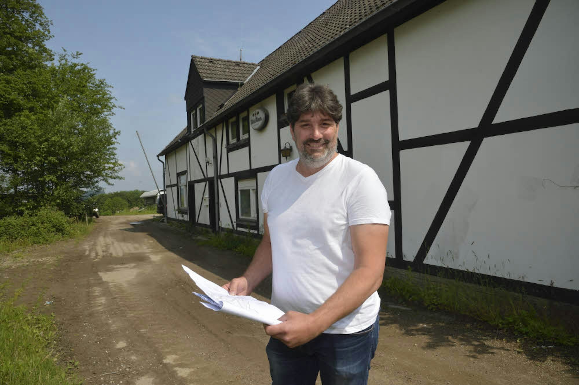 Projektleiter Harald Daunheimer vor der alten Gaststätte.