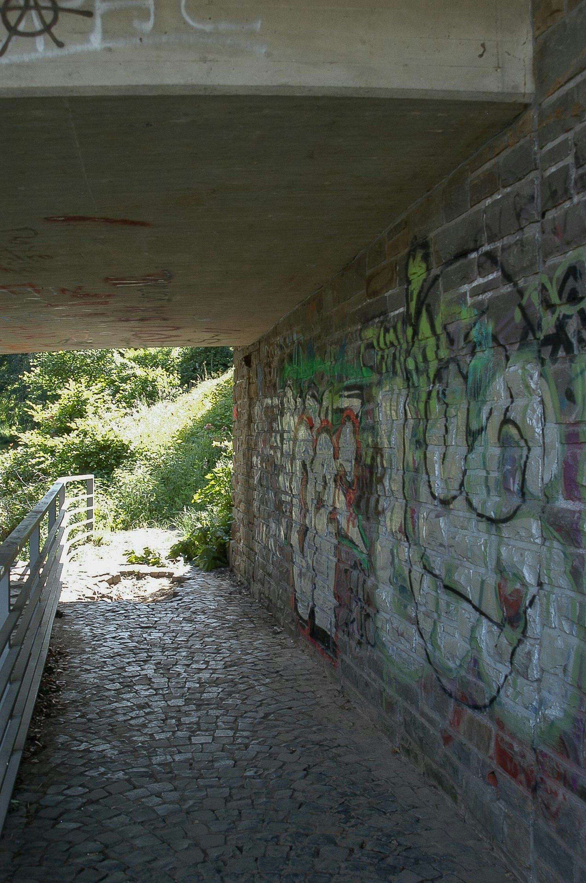 Graffiti erlaubt: Die Brücke an der Nöthener Straße soll offiziell künstlerisch gestaltet werden, damit die Schmierereien aufhören.
