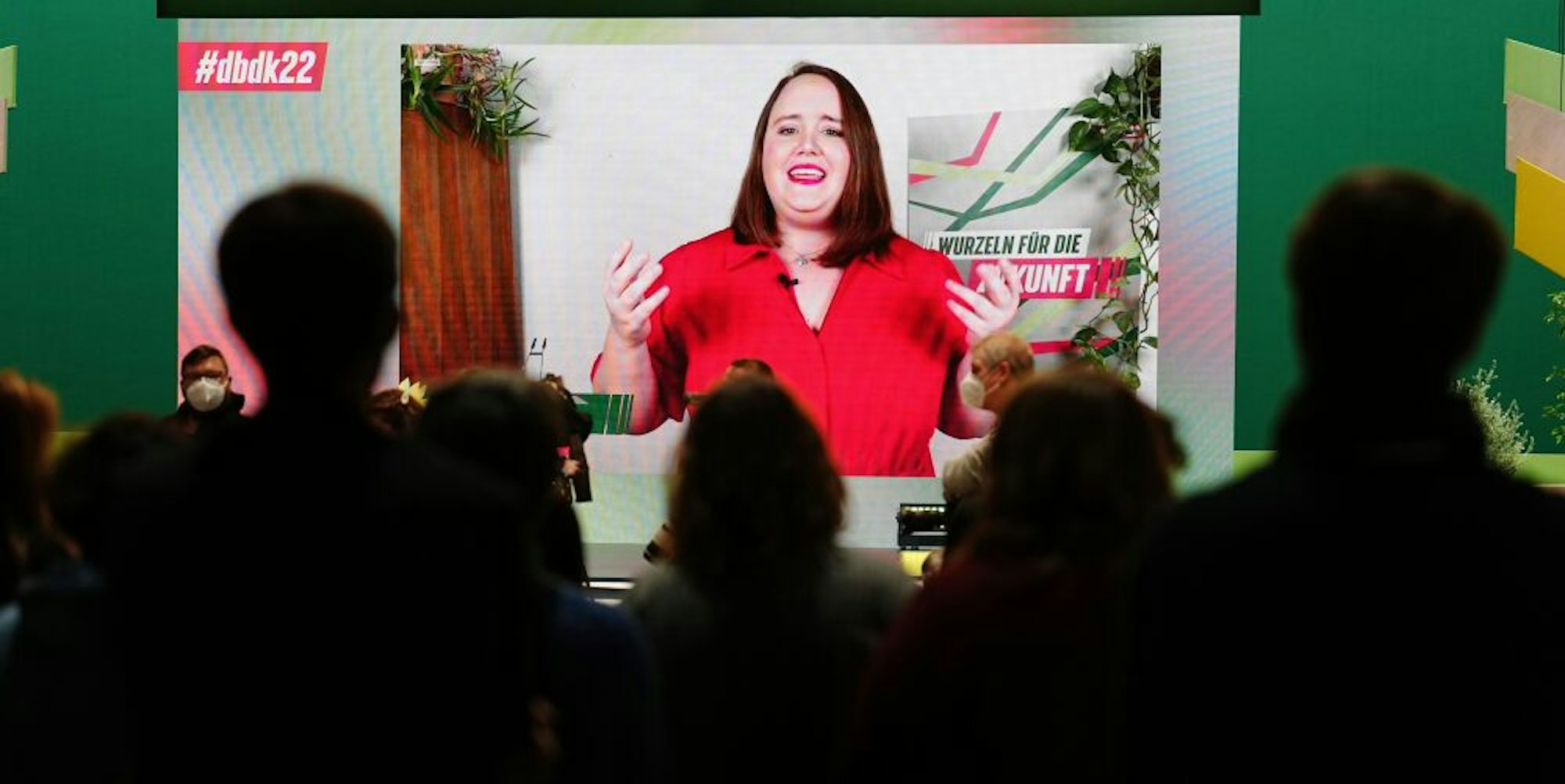 Sein Ziel sei es, die Partei voranzubringen, um „wieder in der K-Frage mitspielen zu können“, erklärt Nouripour. Nicht weniger kämpferisch gibt sich die designierte Co-Parteichefin Lang, die wegen einer Corona-Infektion nicht auf der Bühne im Berliner Velodrom steht, sondern sich wie die mehreren Hundert Delegierten per Internet von zu Hause zuschalten muss.
