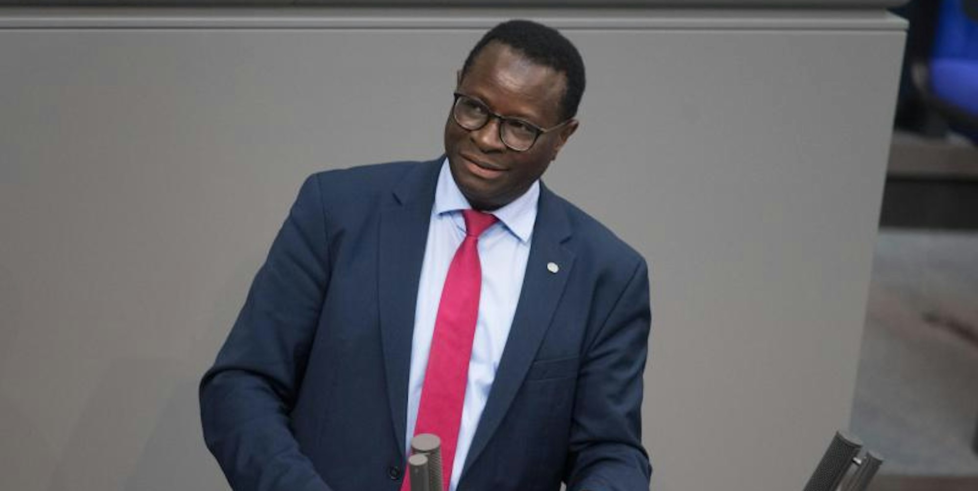 Karamba Diaby (SPD) im Bundestag: Das Büro des Abgeordneten in Halle ist beschossen worden. Foto: Jörg Carstensen/dpa