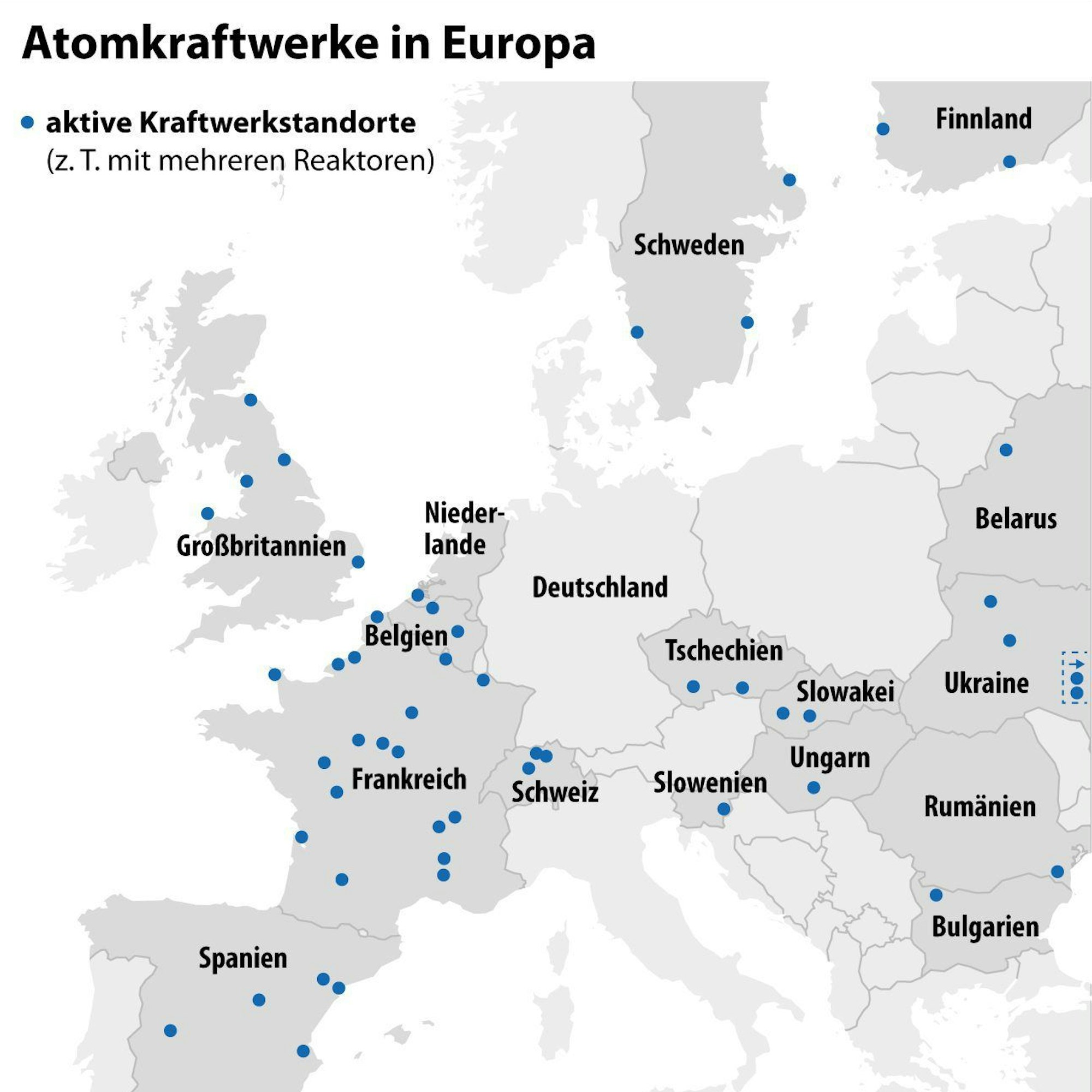 56 der 100 Atomkraftwerke in Europa sind in Frankreich. Grundsätzlich wird der Bau von 14 oder mehr neuer Anlagen in Erwägung gezogen. Außerdem soll die Laufzeit bestehender Kraftwerke verlängert werden. Jedoch zeigt sich auch, wie schwierig der Neubau ist: Mitte 2024 soll in Flamanville in der Normandie ein neuer Meiler ans Netz gehen – mehr als 16 Jahre nach Baubeginn und mit Kosten von 13,2 Milliarden Euro viermal so teuer wie vorgesehen. Als Atommacht setzt Frankreich aber auch aus anderen Gründen auf Kernkraft: Das Verteidigungsministerium hat angekündigt, im AKW Civaux Material, das Lithium enthält, anreichern zu wollen. Daraus soll das Gas Tritium für Waffen gewonnen werden.