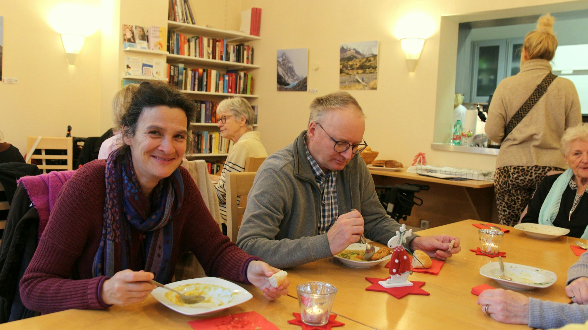 Stammgäste Michaela Hutmacher und Ulrich Steffen genossen nicht nur das frisch gekochte Essen, sondern auch die Geselligkeit im Café F.