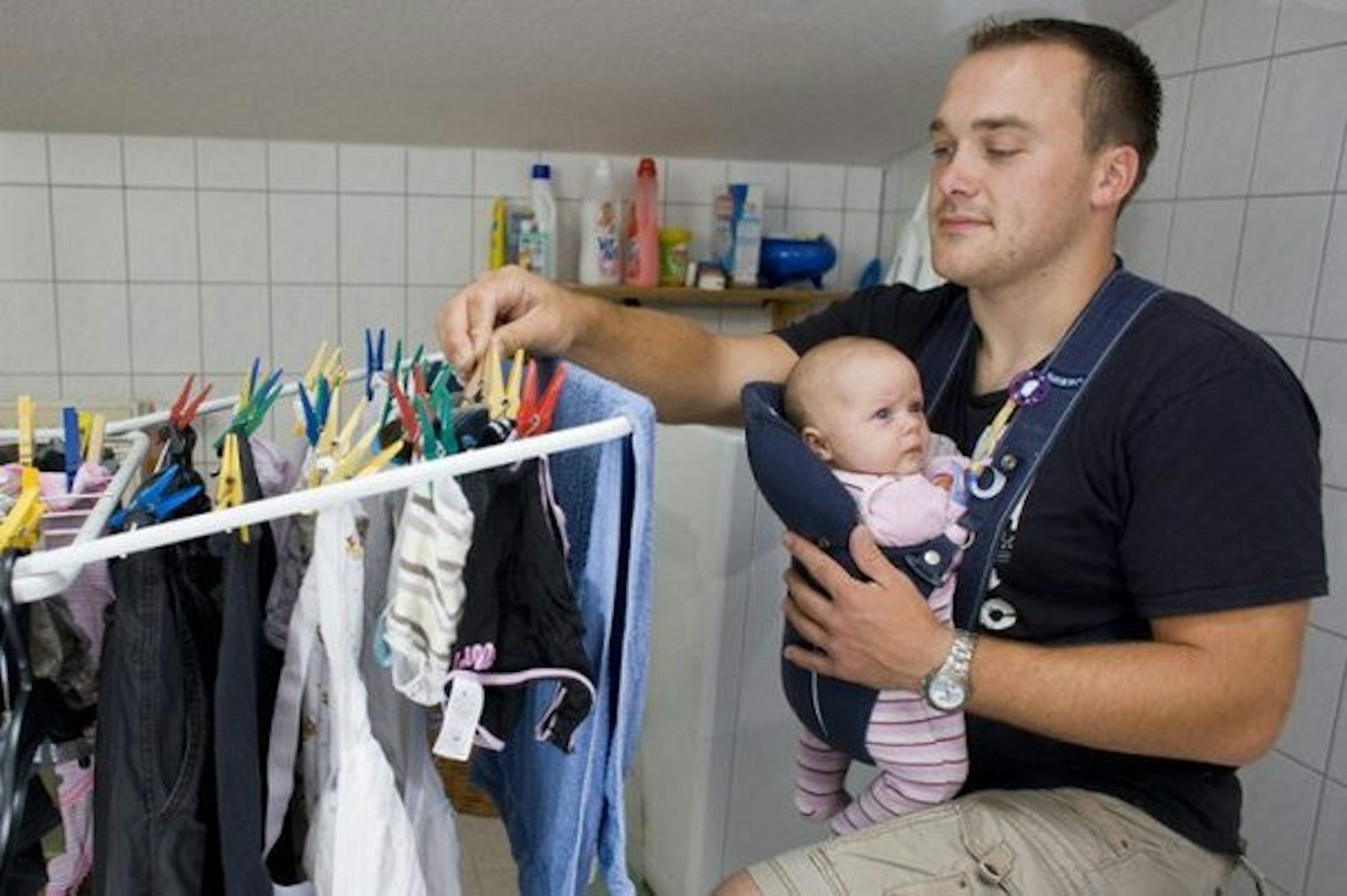 Hausarbeit und Babytrage: Viel zu wenige Väter wagen den Schritt, auch einmal Fulltime für ihre Kinder da zu sein (Symbolbild).