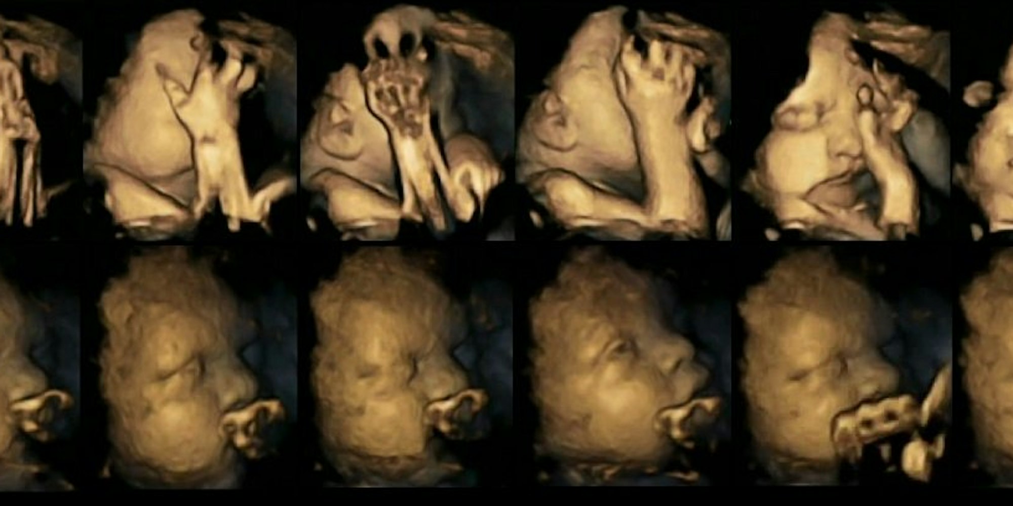 Stress im Uterus: Föten von Raucherinnen (oben im Bild) bewegen häufiger das Gesicht und berühren sich öfter als Ungeborene von Nichtraucherinnen (unten).