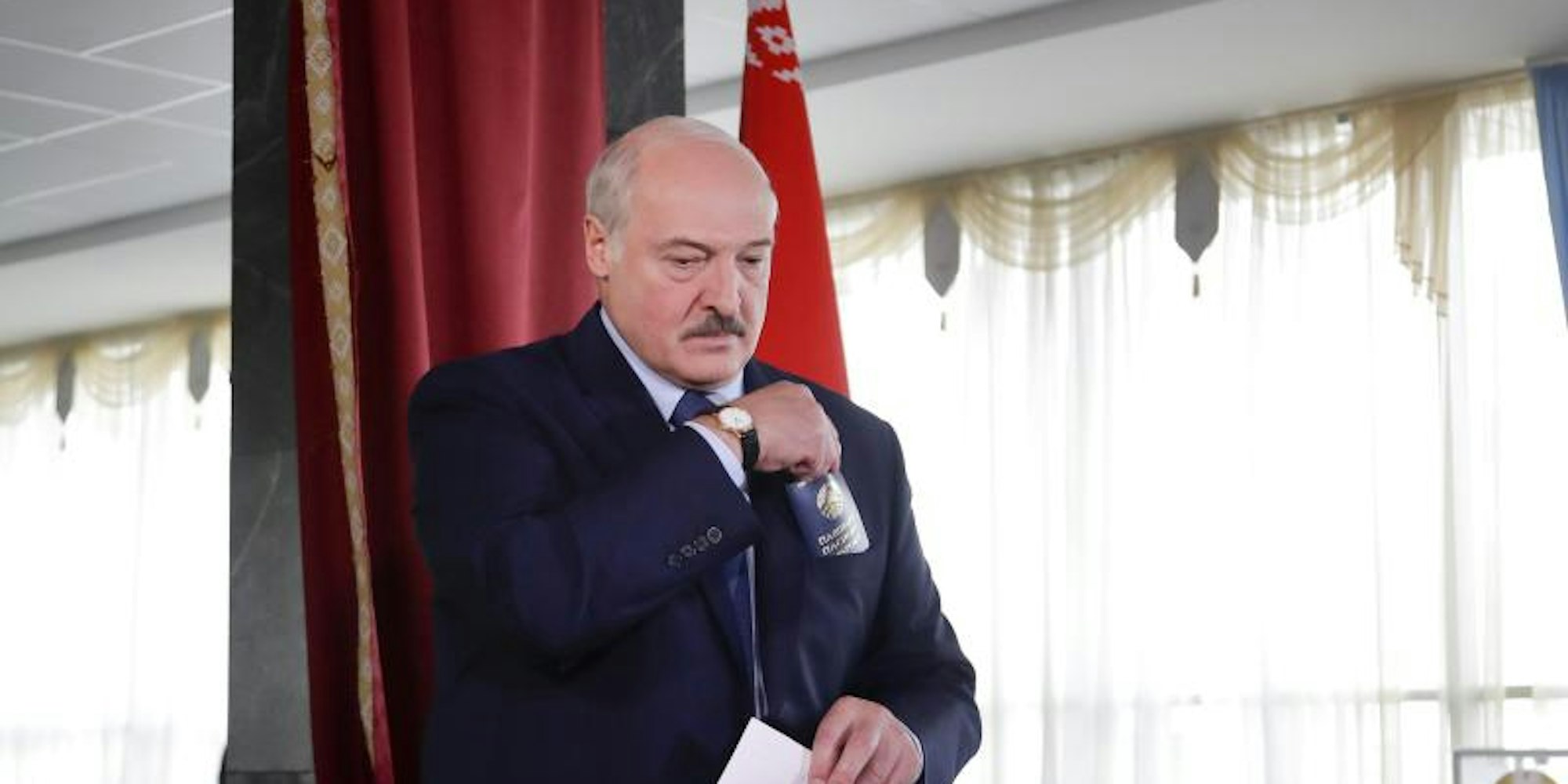 Alexander Lukaschenko in seinem Wahllokal in Minsk.